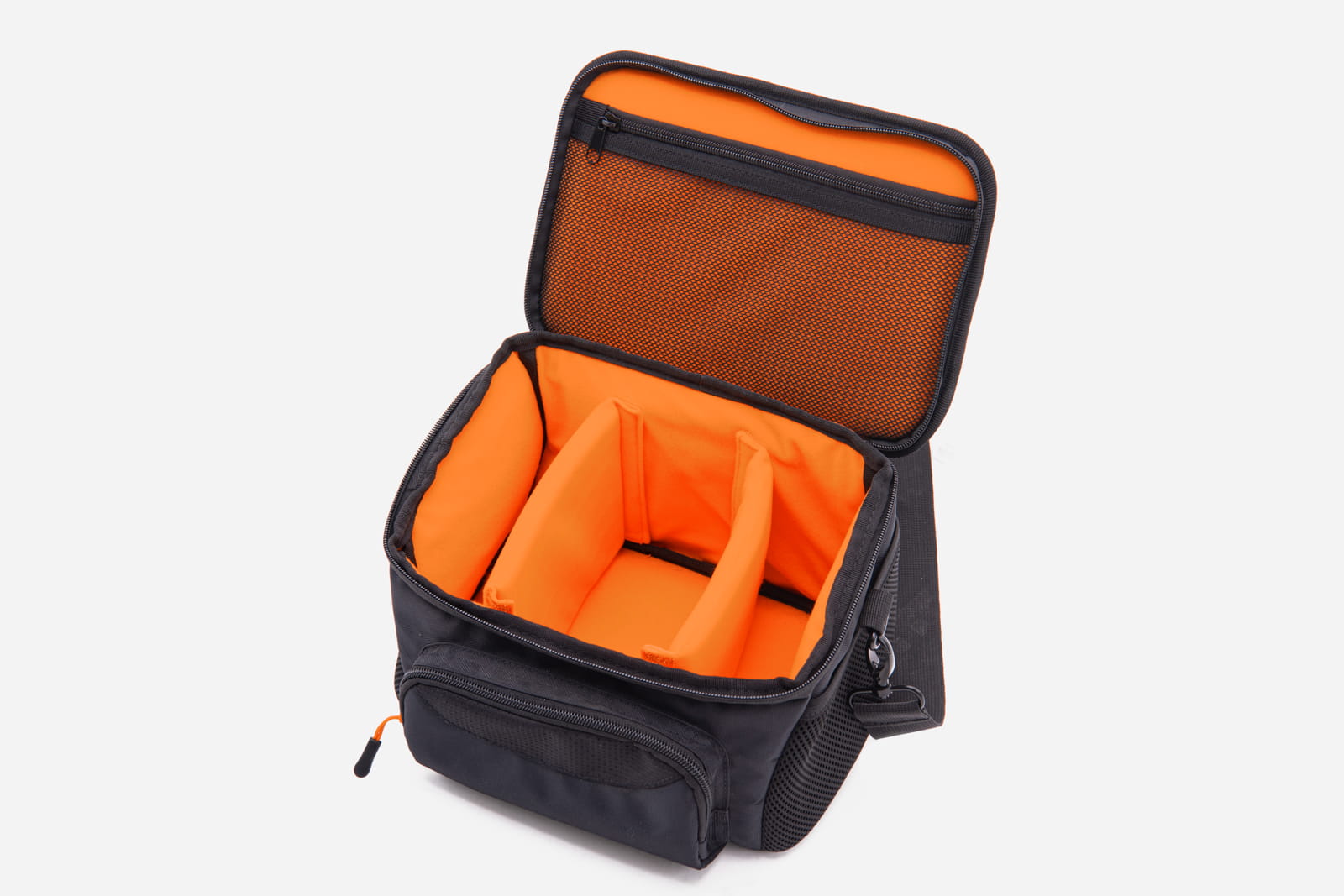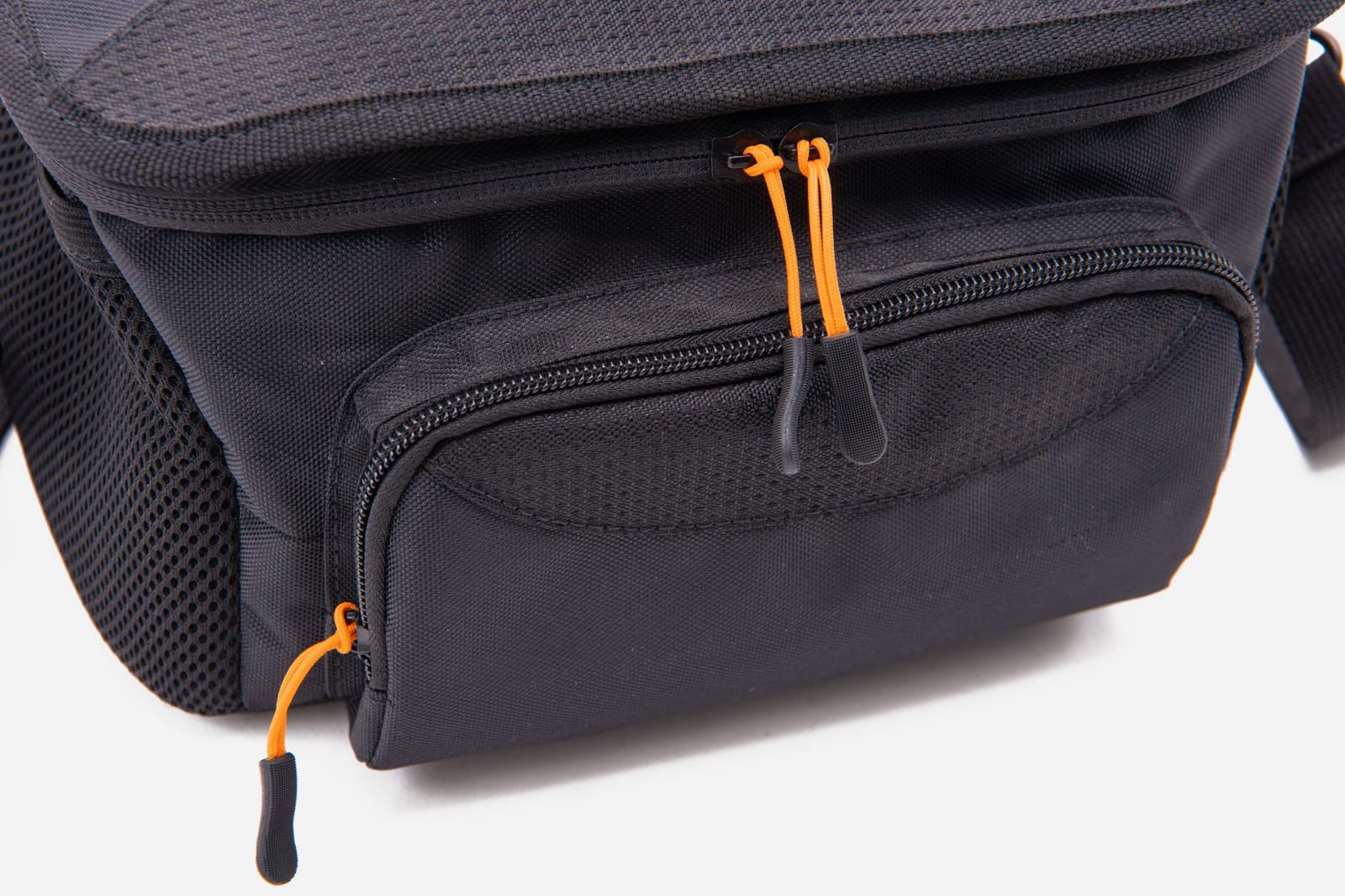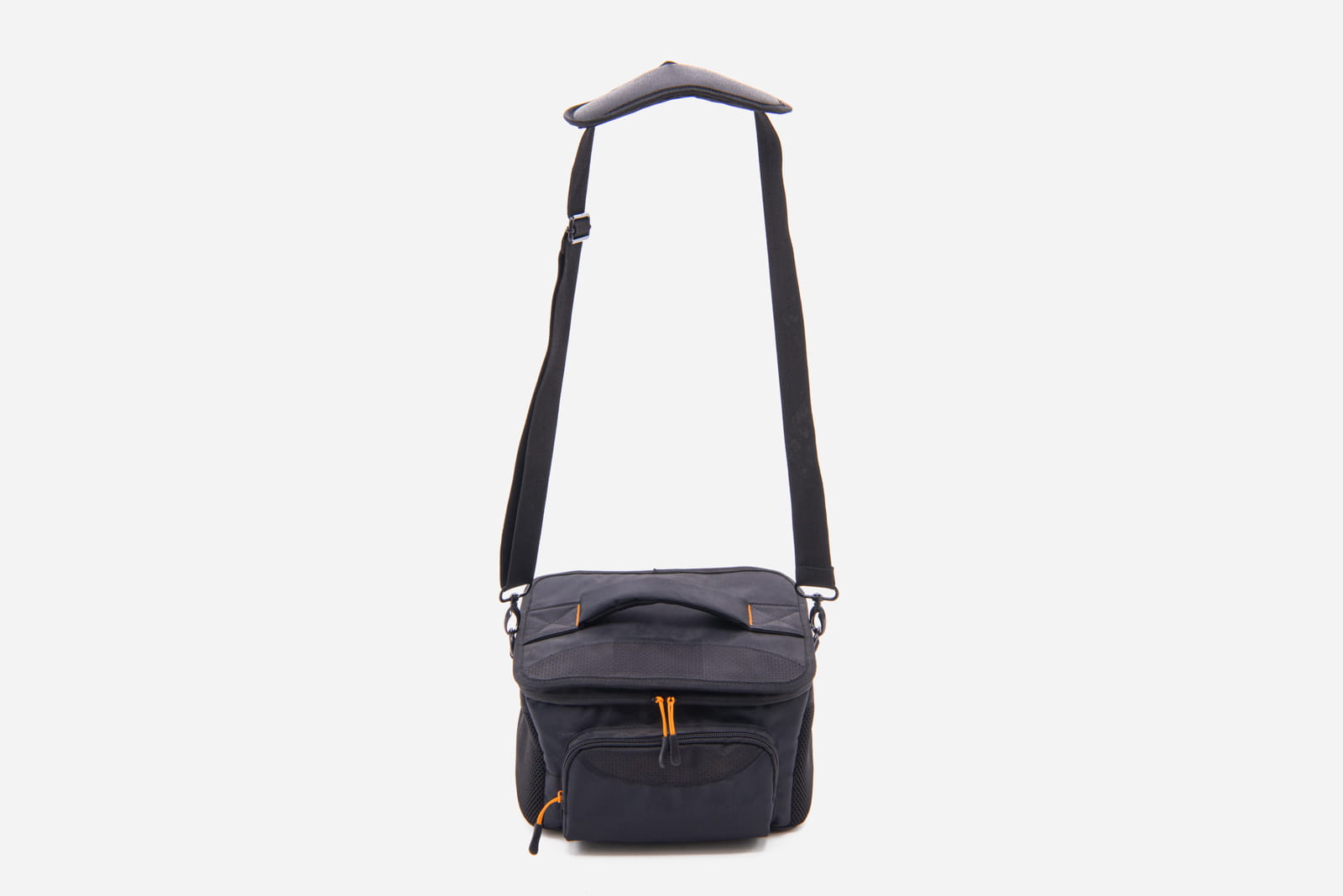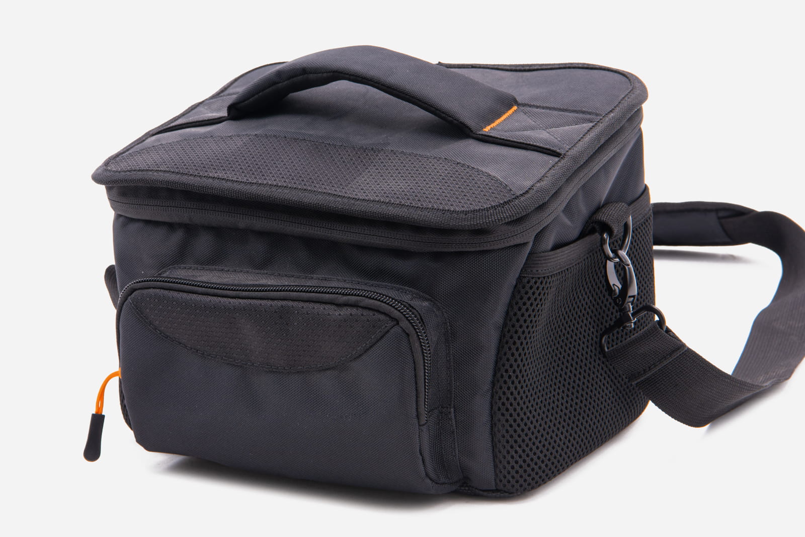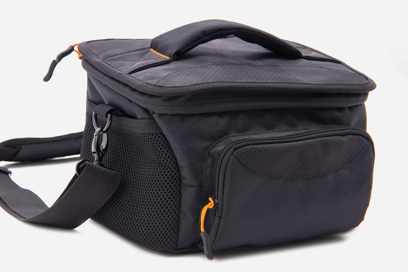 Materiał poliester, z którego wykonana jest torba fotograficzna, jest odporny na warunki atmosferyczne. Jej wzmocniona konstrukcja zapewni ochronę sprzętu przed kurzem i wilgocią oraz zamortyzuje aparat podczas upadku. Torba posiada bezpieczną komorę główną wyłożoną miękką podszewką. Zastosowano w niej system ruchomych przegródek pozwalający na idealne dopasowanie do posiadanego aparatu. Dzięki temu leży on stabilnie i bezpiecznie w wyznaczonym miejscu, a przestrzeń jest optymalnie zagospodarowana. Zapinanie na podwójny zamek błyskawiczny ułatwia wyjmowanie i chowanie sprzętu. Torba wyposażona została w odpinany, regulowany pasek na ramię oraz uchwyt ręczny, pozwalający na wygodny transport.