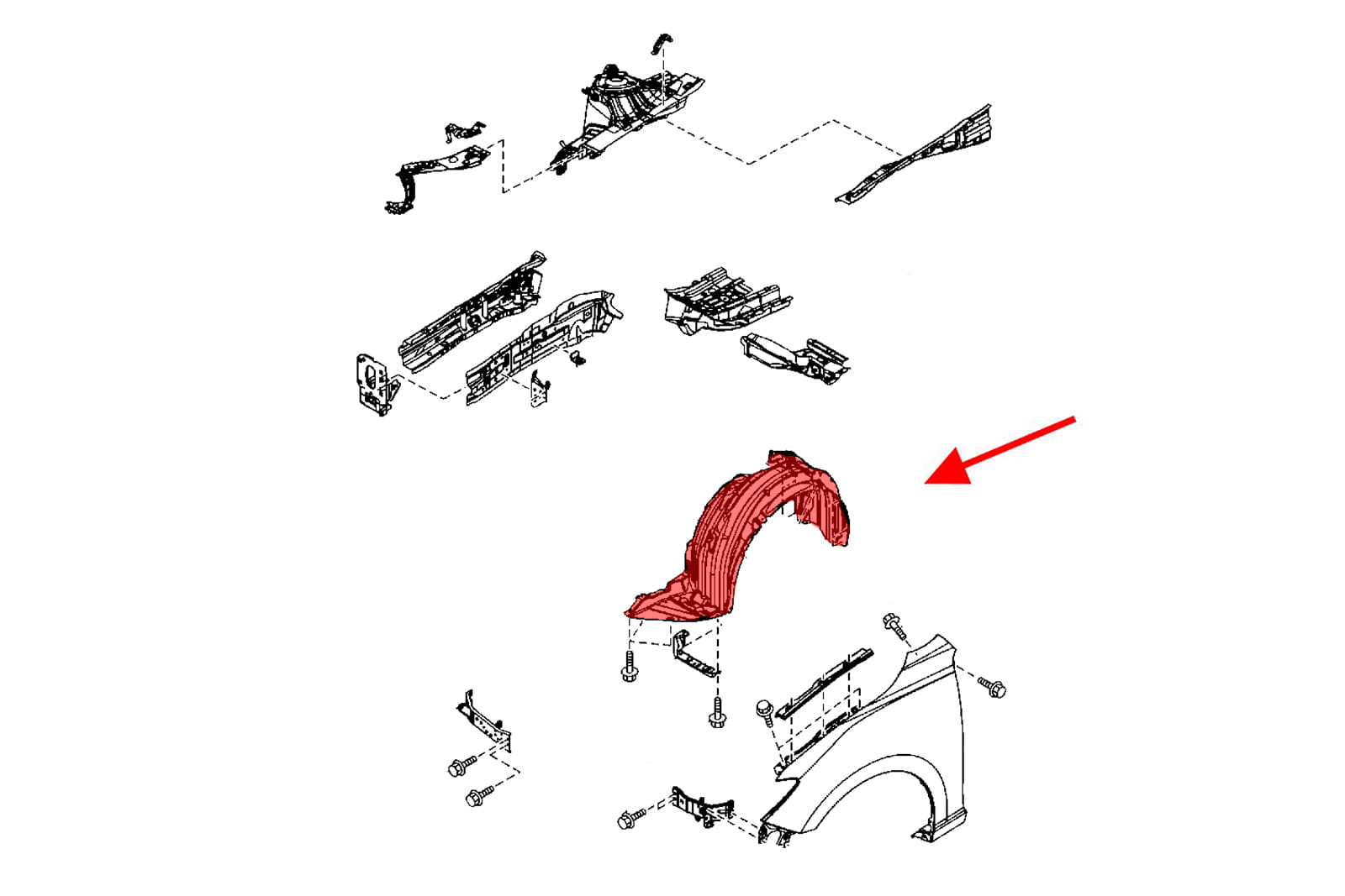 Wewnętrzne nadkole przednie lewe, dla MAZDA 3 III (BM) 2013-2017.