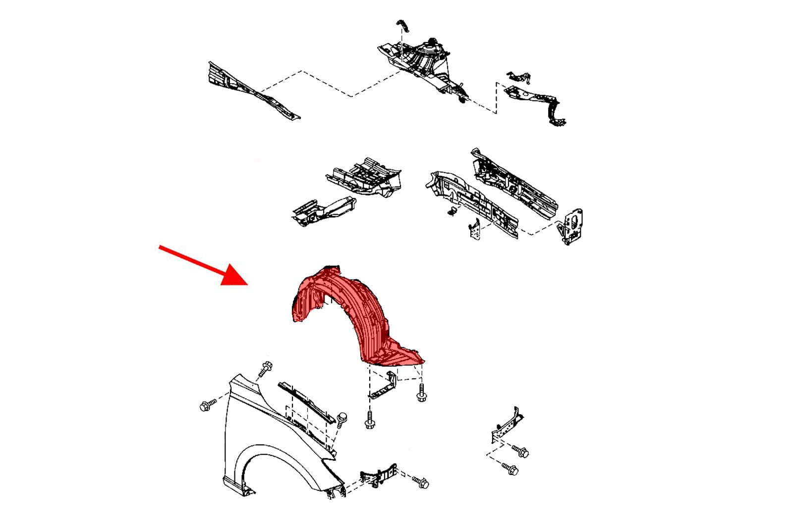 Wewnętrzne nadkole przednie prawe, dla MAZDA 3 III (BM) 2013-2017.
