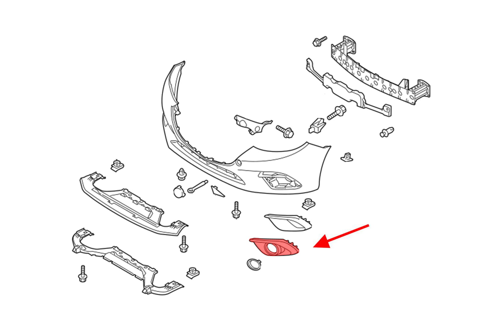 Zaślepka halogenu z otworem pod lampę / kratka zderzaka lewa, bez chormu, do MAZDA 3 III (BM) 2014-2016 (wersja przed faceliftingiem).