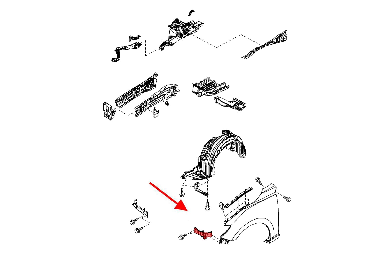 Mocowanie przedniego, lewego błotnika dla MAZDA 3 III (BM,BN) 2014-2018.
