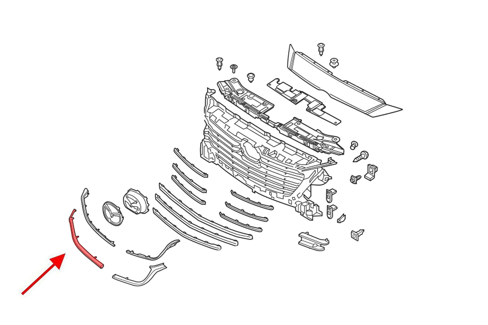 Listwa chromowana atrapy chłodnicy, prawa, dla MAZDA 3 III (BN) 2016-2018 (wersja po faceliftingu).