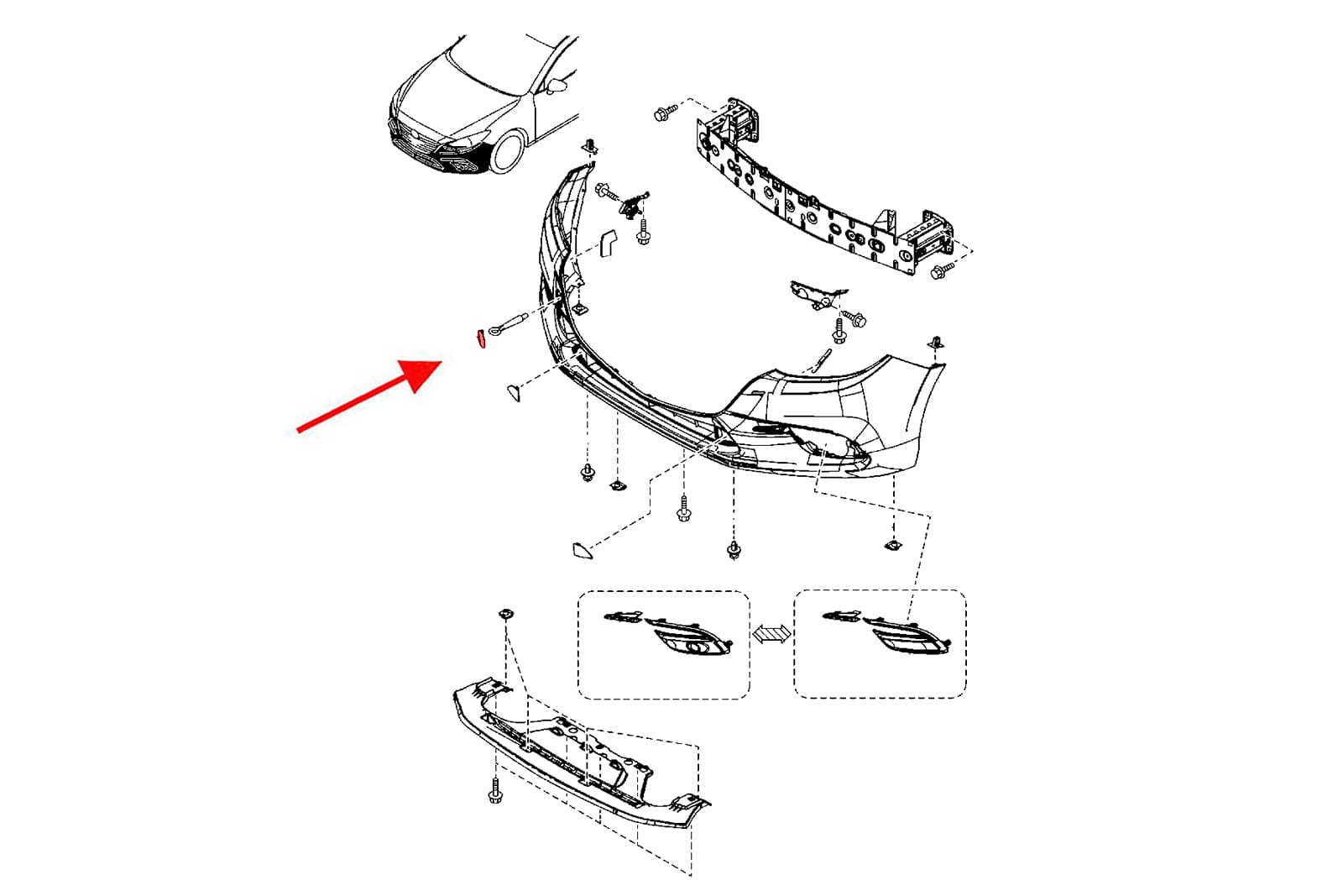 Zaślepka haka holowniczego, zaślepka zderzaka przedniego, dla MAZDA 3 III (BN) 2016-2018 (wersja po liftingu).