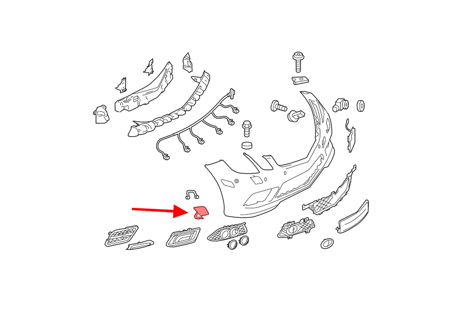 Zaślepka spryskiwacza przedniego reflektora, prawa, dedykowana dla MERCEDES KLASY E (C207) 2010-2014 (w wersji przed faceliftingiem).