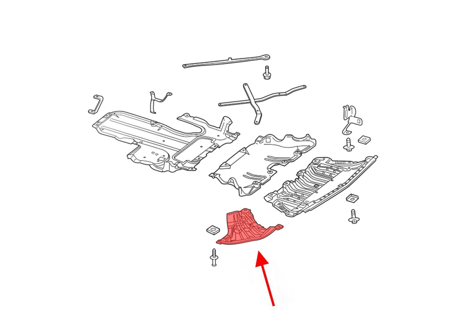 Osłona dolna przedniego zderzaka z kompletem śrub mocujących, prawa, dla MERCEDES E-CLASS (C238) 2017+. Nie pasuje do wersji z pakietem AMG.
