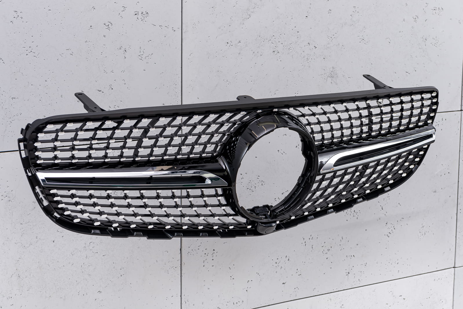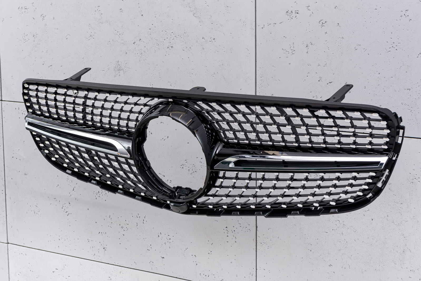 Produkt wykonany jest z wysokiej jakości tworzywa ABS w kolorze czarnym, z chromowanymi elementami. Znaczek MERCEDES nie jest częścią zestawu. Grill DIAMOND jest częścią zamienną, montowaną w miejsce fabrycznego grilla. Zalecamy montaż profesjonalny.