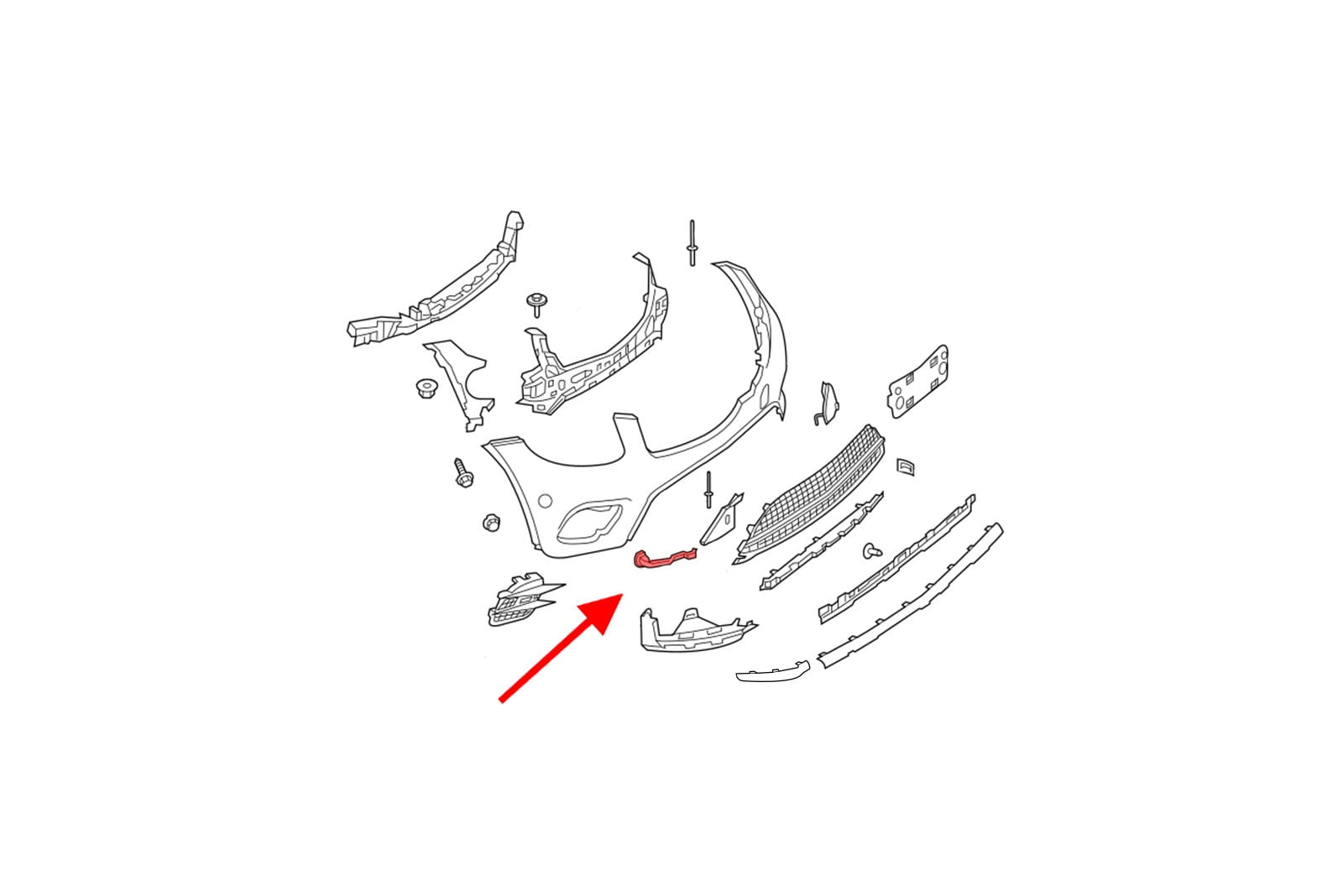 Element mocujący poszycie przedniego zderzaka, ślizg prawy, dla MERCEDES GLC (X253, C253) 2015-2019 (wersja przed faceliftingiem). Pasuje również do wersji z pakietem stylizacyjnym AMG (AMG Line).