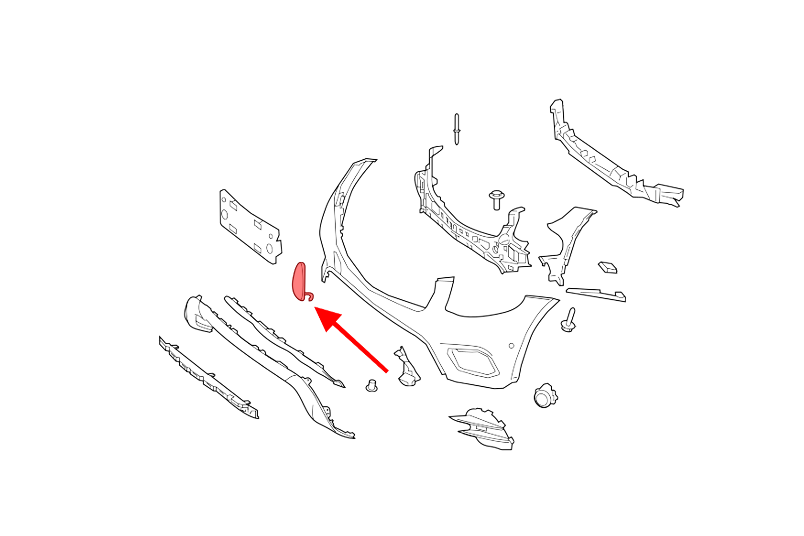 Zaślepka przedniego zderzaka / haka holowniczego, dla MERCEDES GLC (X253, C253) 2015-2019 (wersja przed faceliftingiem). Nie pasuje do wersji z pakietem stylizacyjnym AMG (AMG Line).