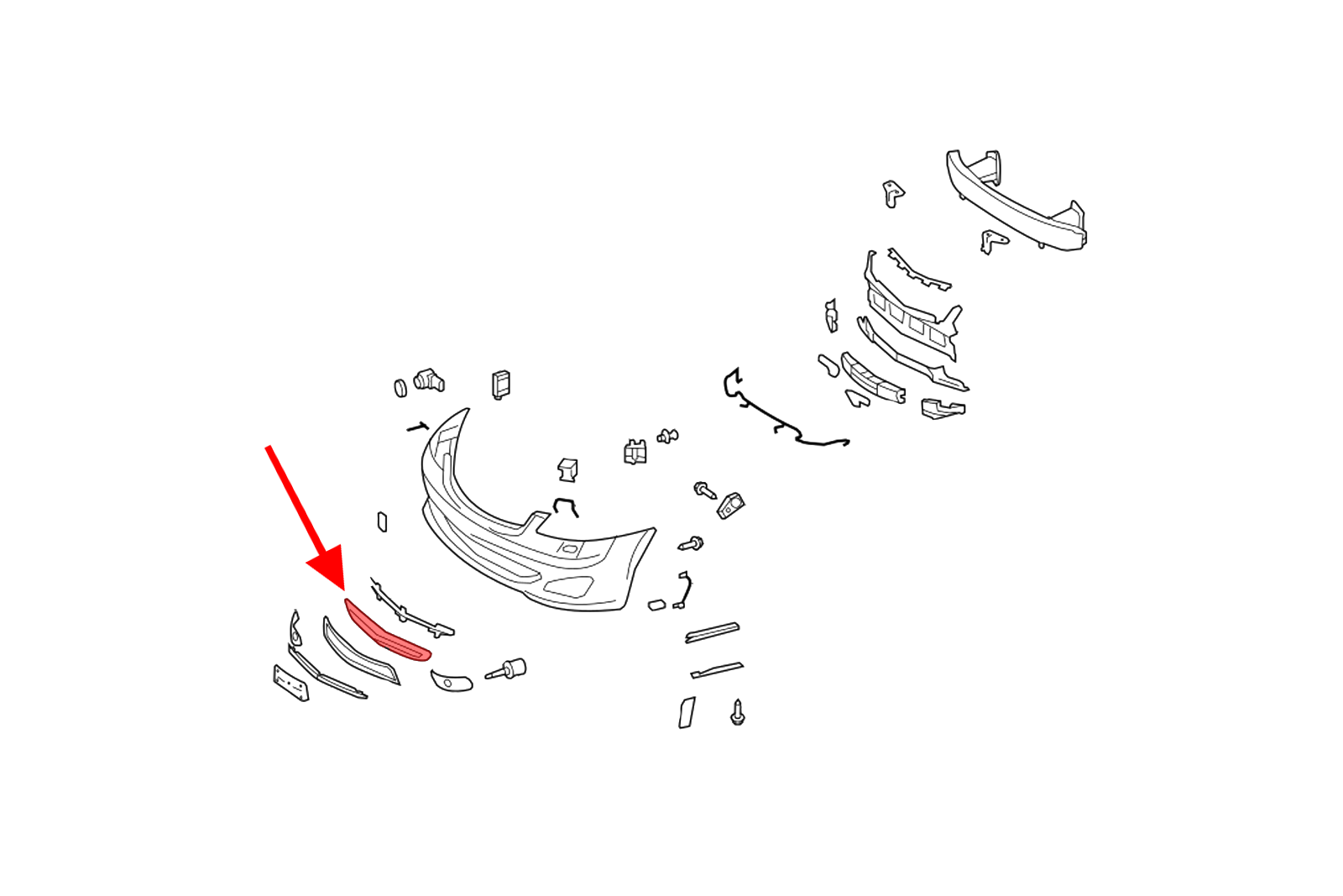 Kratka przedniego zderzaka środkowa, dla MERCEDES KLASA S (W221) 2009-2013. (wersja po faceliftingu). Nie pasuje do wersji z pakietem stylizacyjnym AMG (AMG Line).
