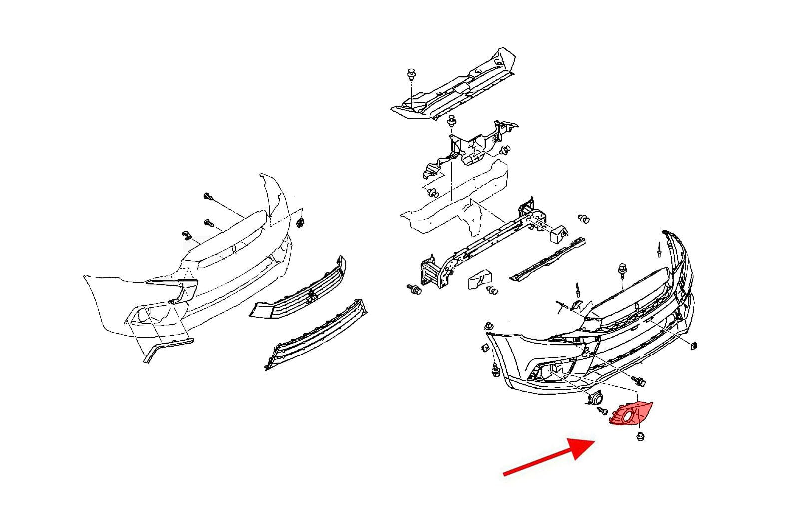 Zaślepka zderzaka z otworem pod lampę przeciwmgielną, prawa, dla MITSUBISHI ASX 2016-2019 (wersja po drugim lifitingu).