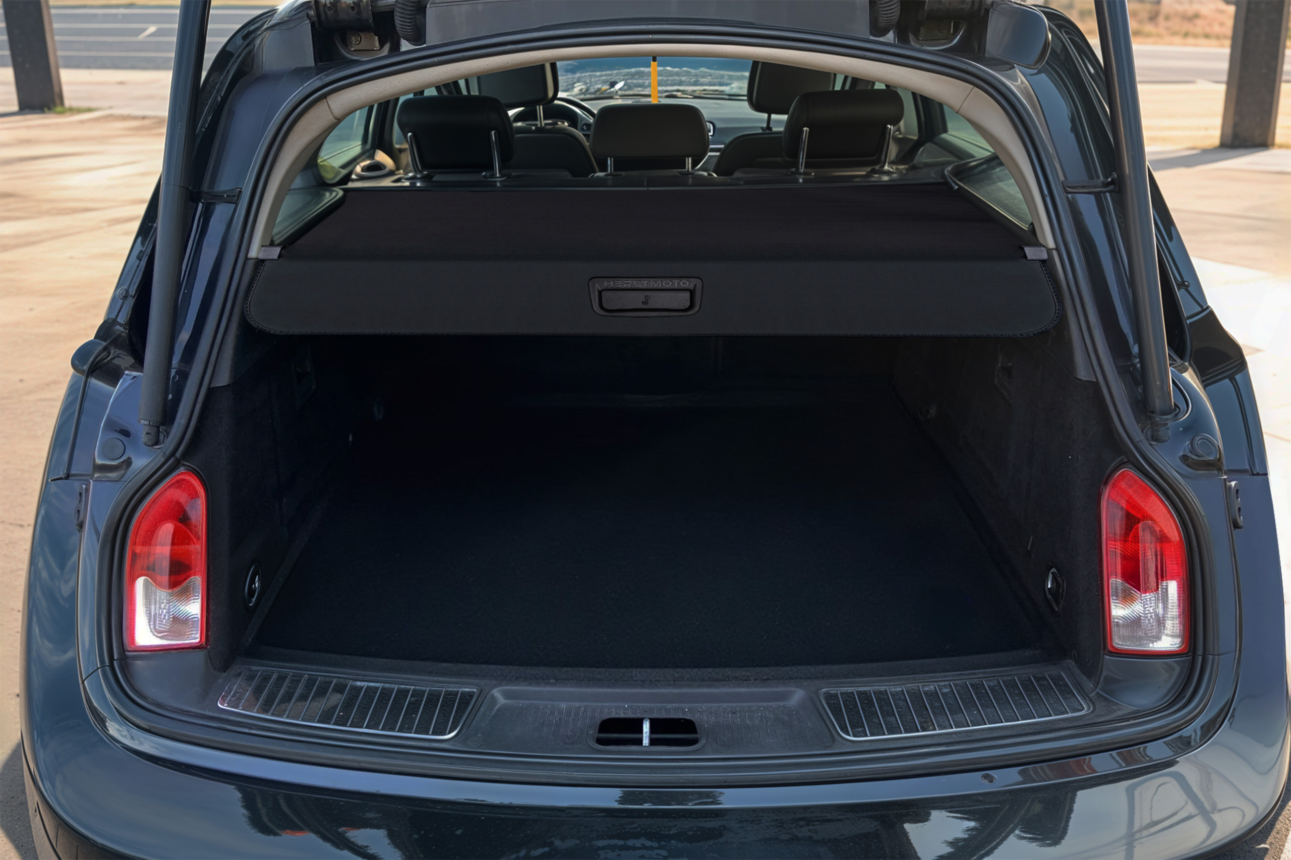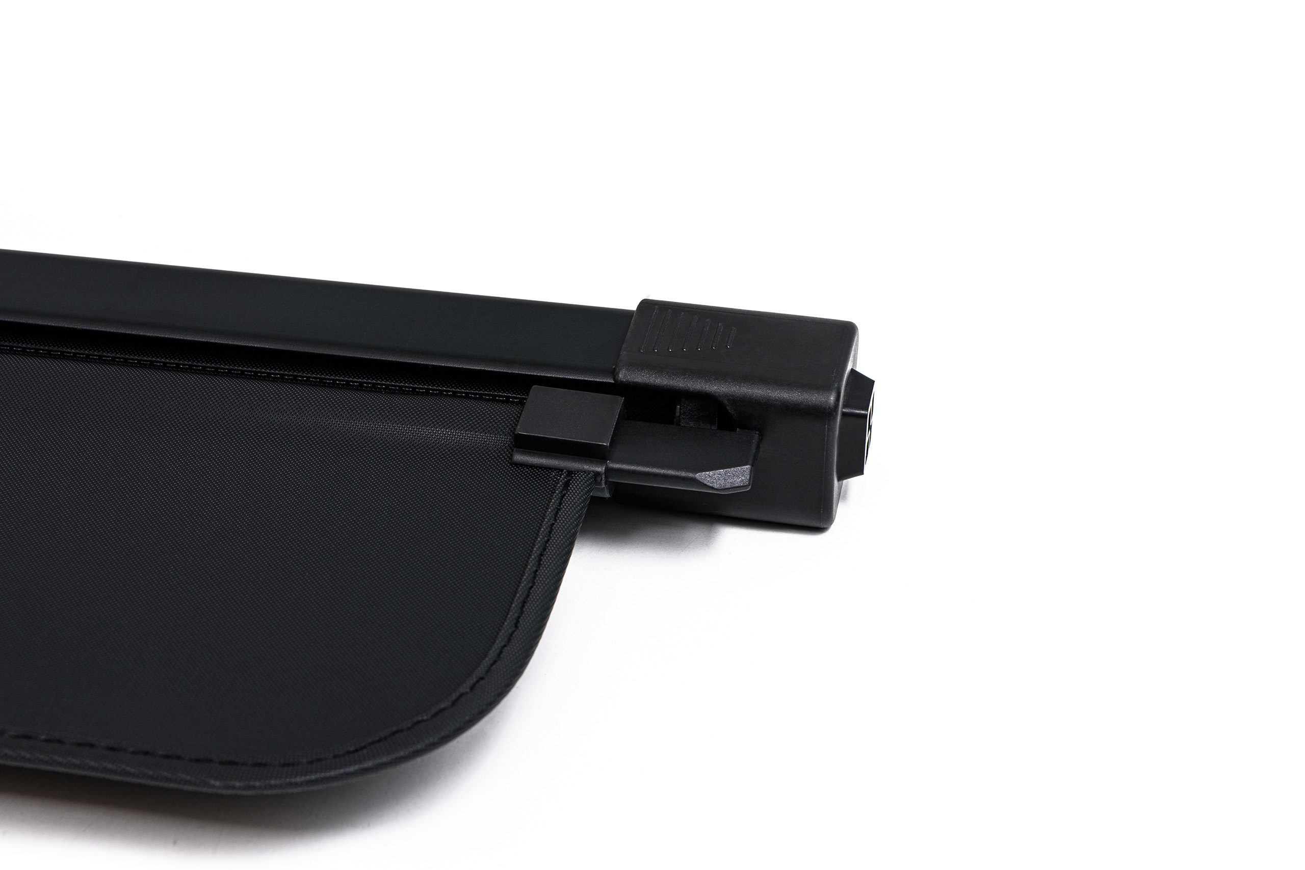 Elegancki czarny kolor oraz estetyka wykonania sprawiają, że roleta doskonale współgra ze stylem samochodu. Poszycie zasłony wykonane zostało z materiału odpornego na uszkodzenia oraz odbarwienia spowodowane nasłonecznieniem i zmianami temperatur, dzięki czemu produkt doskonale prezentuje się przez długi czas. Solidna kaseta oraz aluminiowa płyta zapewniają trwałość konstrukcji i wygodę użytkowania rolety. Kaseta zaprojektowana została w taki sposób, aby umożliwić stabilne zamocowanie w oryginalnych, fabrycznych miejscach montażowych za tylnymi fotelami.
