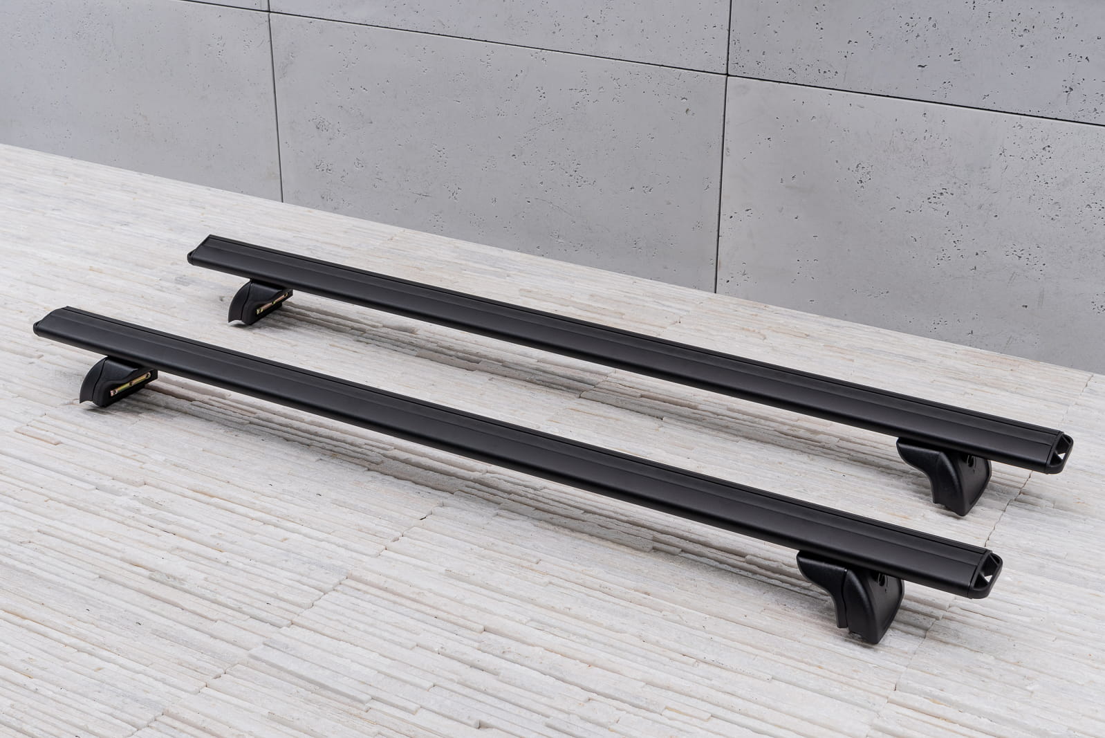 Bagażnik wykonano z wysokiej jakości aluminium z dodatkowo wzmocnionym systemem mocowania "T" belki górnej. Mocowania belek (łapy) zostały wykonane ze stali co gwarantuje największą wytrzymałość, dodatkowo obudowano je mocnym plastikiem co zapewnia odpowiednią aerodynamikę łap.