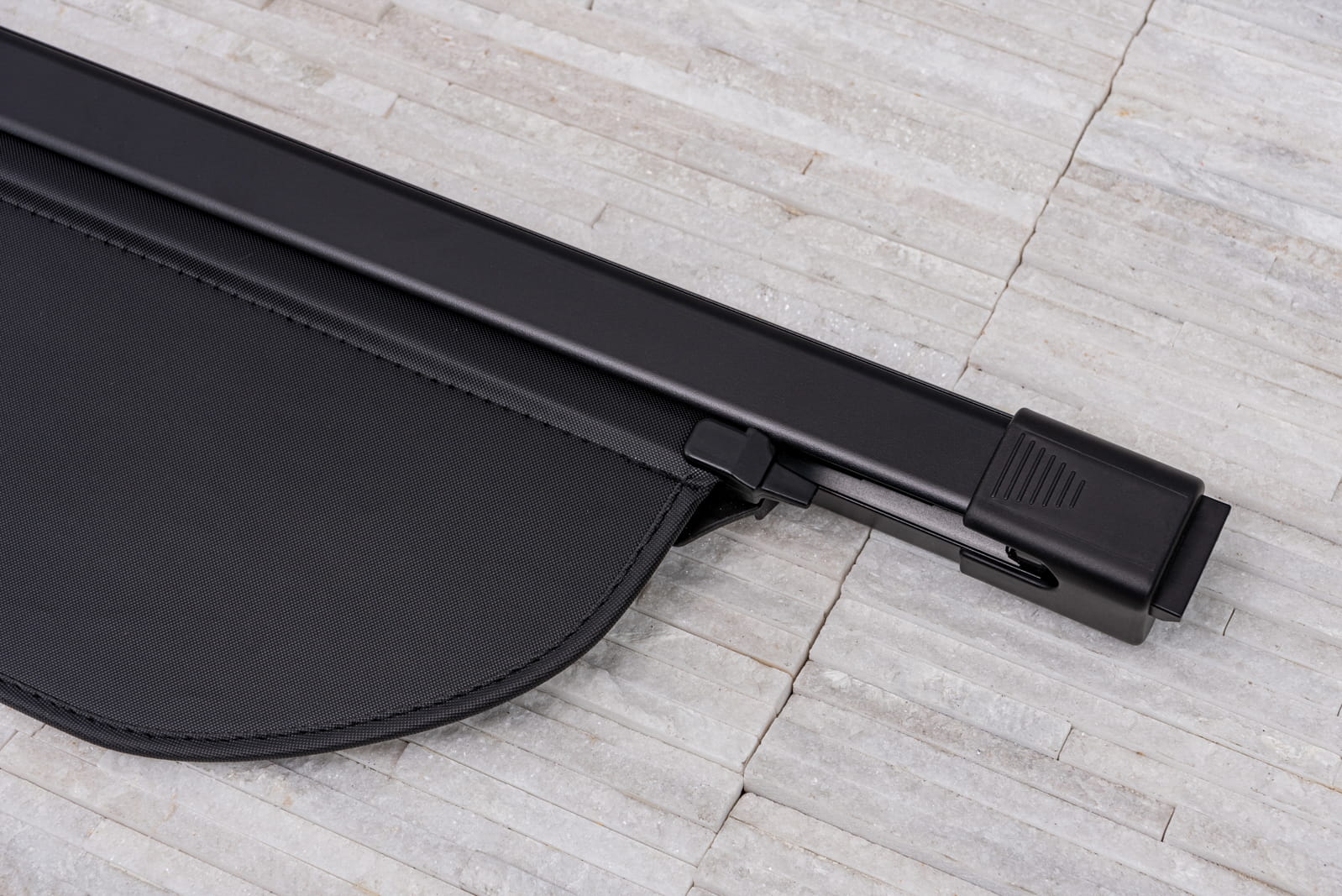 Zastosowanie składanej rolety pozwala chronić przestrzeń bagażową przed nadmiernym nasłonecznieniem. Osłania ona także zawartość bagażnika, zmniejszając tym samym ryzyko kradzieży znajdujących się wewnątrz przedmiotów. Elegancki czarny kolor oraz estetyka wykonania sprawiają, że roleta doskonale współgra ze stylem samochodu. Poszycie zasłony wykonane zostało z materiału odpornego na uszkodzenia oraz odbarwienia spowodowane nasłonecznieniem i zmianami temperatur, dzięki czemu produkt doskonale prezentuje się przez długi czas.