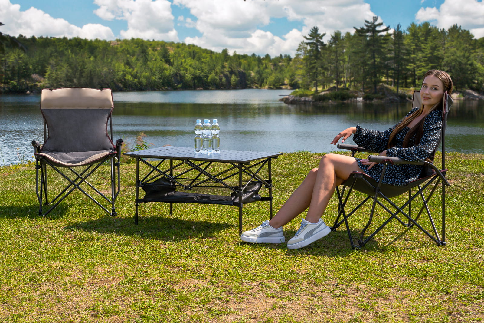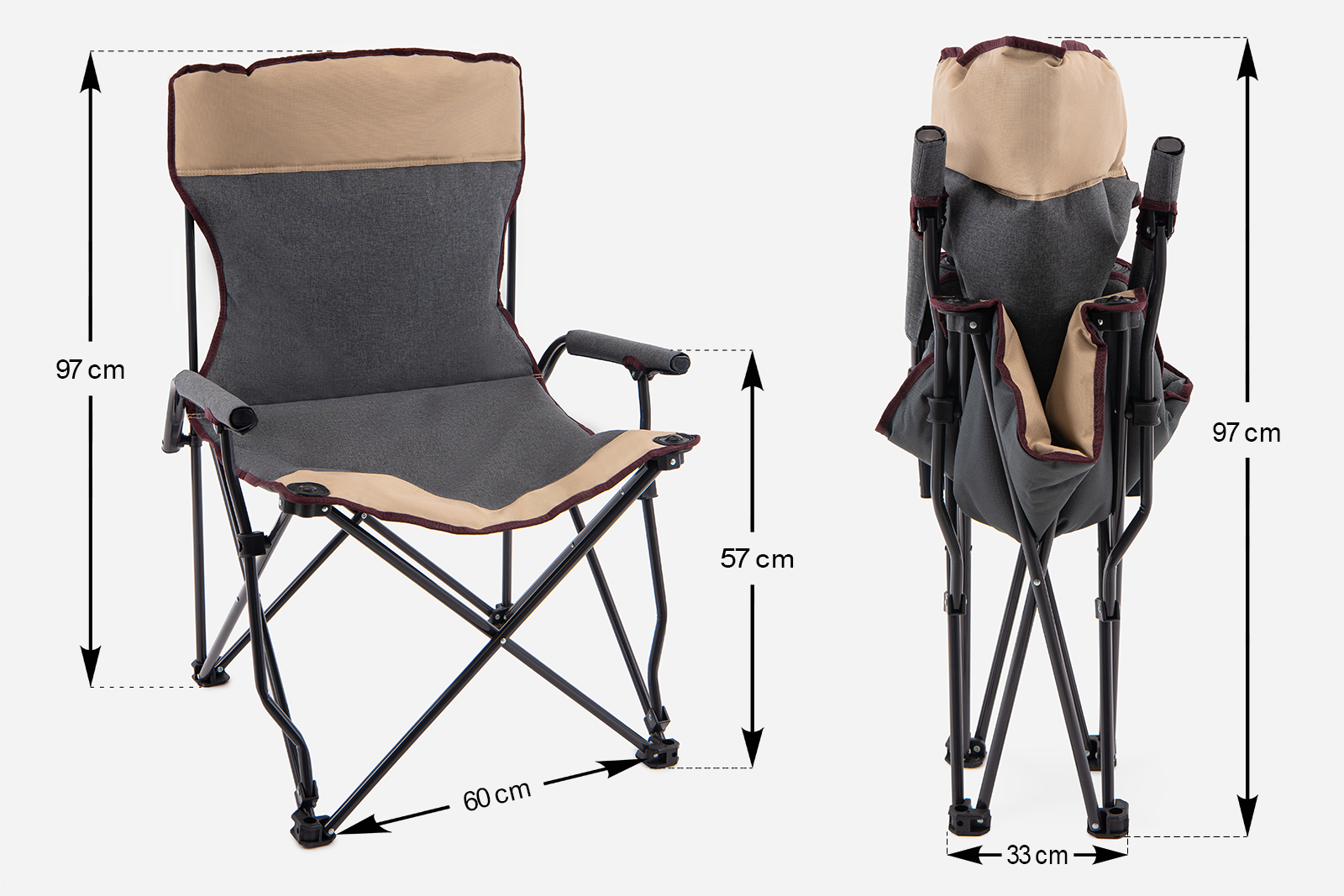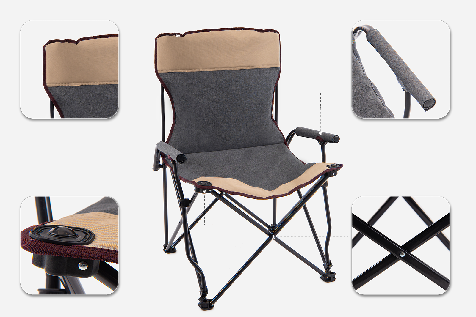 Składane, komfortowe krzesło turystyczne z oparciem.