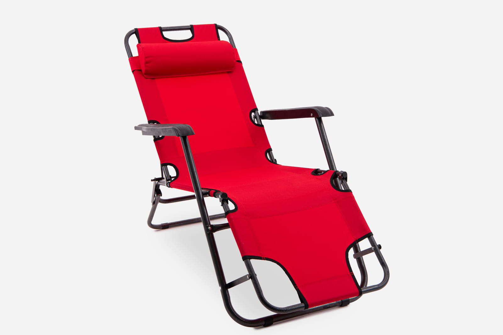 SKŁADANY LEŻAK Z PODNÓŻKIEM I ZAGŁÓWKIEM CZERWONY
