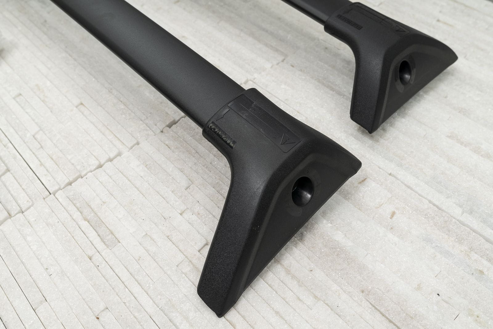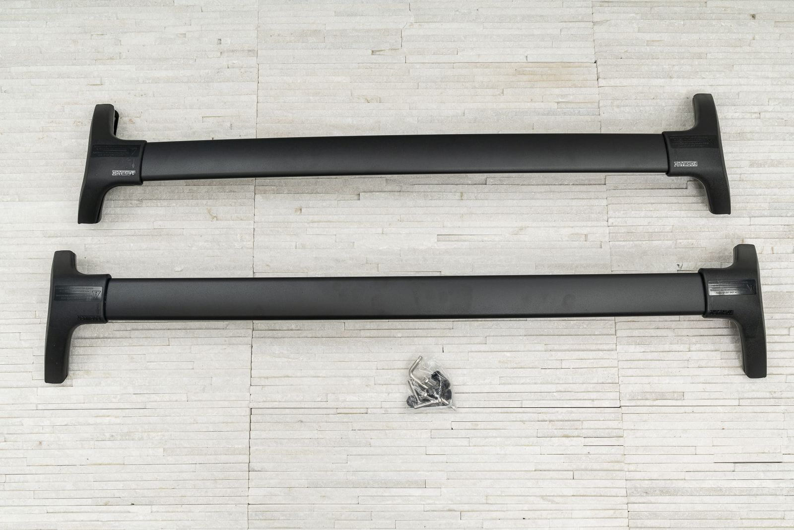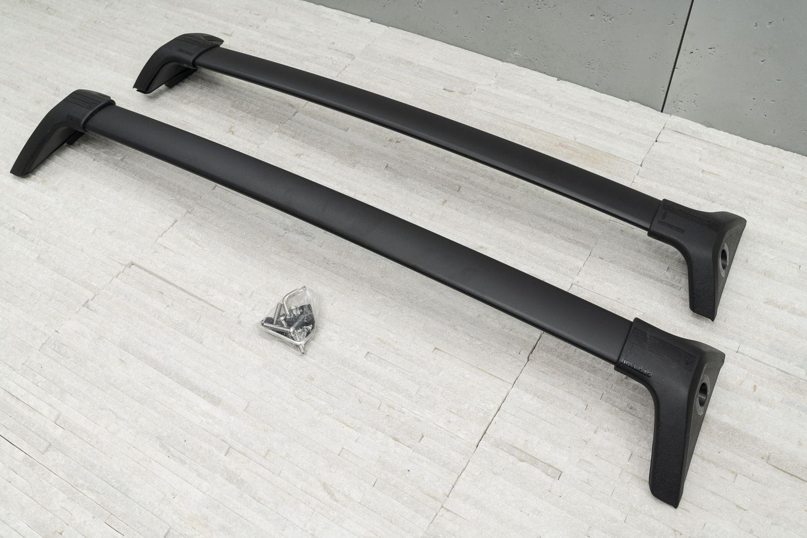 W komplecie znajdują się: dwie belki aluminiowe i cztery zaciski i system zabezpieczenia z kluczykami.