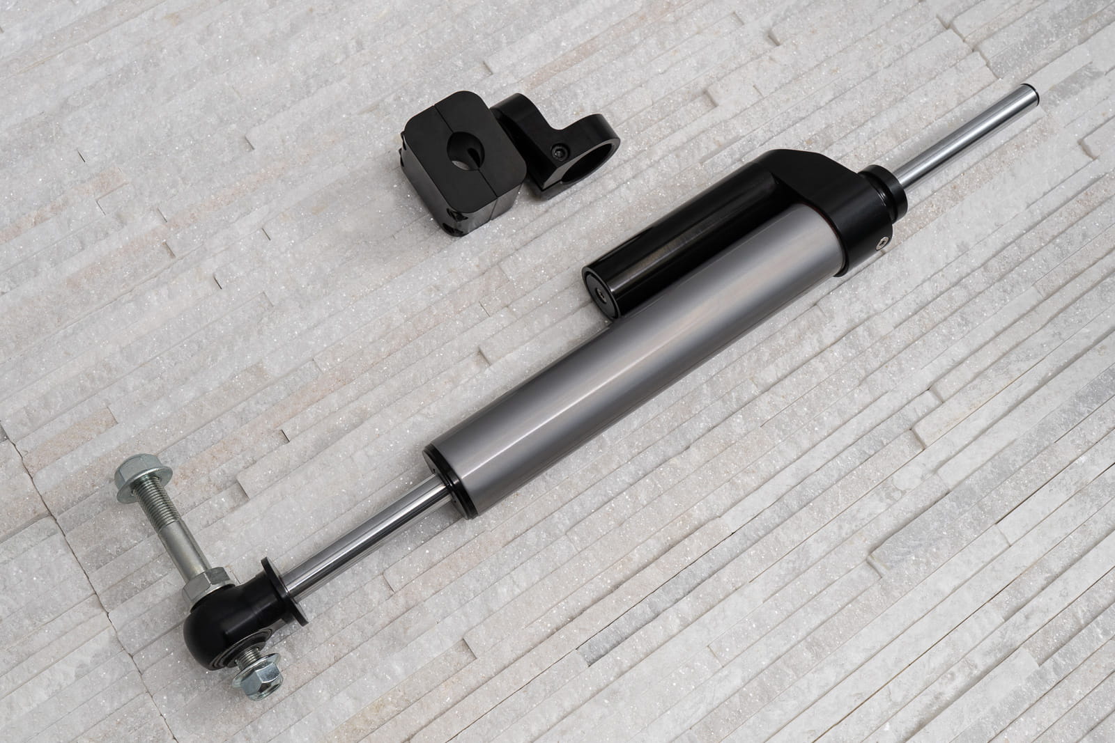 Gazowy amortyzator skrętu dedykowany do SUZUKI JIMNY 1998-2018. Amortyzator gazowy w zestawie z elementami montażowymi. Wyposażony jest w zawór pozwalający na zwiększenie ciśnienia lub zmniejszenie go - za jego pomocą możemy zwiększać lub zmniejszać twardość amortyzatora. Czynność ta nie powinna zająć więcej niż kilka minut. Oferowany produkt stabilizuje kierownicę, amortyzuje drgania, przedłuża żywotność układu kierowniczego. Amortyzator skutecznie eliminuje wibracje układu kierowniczego powstałe zwłaszcza po założeniu większych opon lub opon terenowych. Produkt nowy, oryginalnie zapakowany. Zalecamy montaż profesjonalny! |