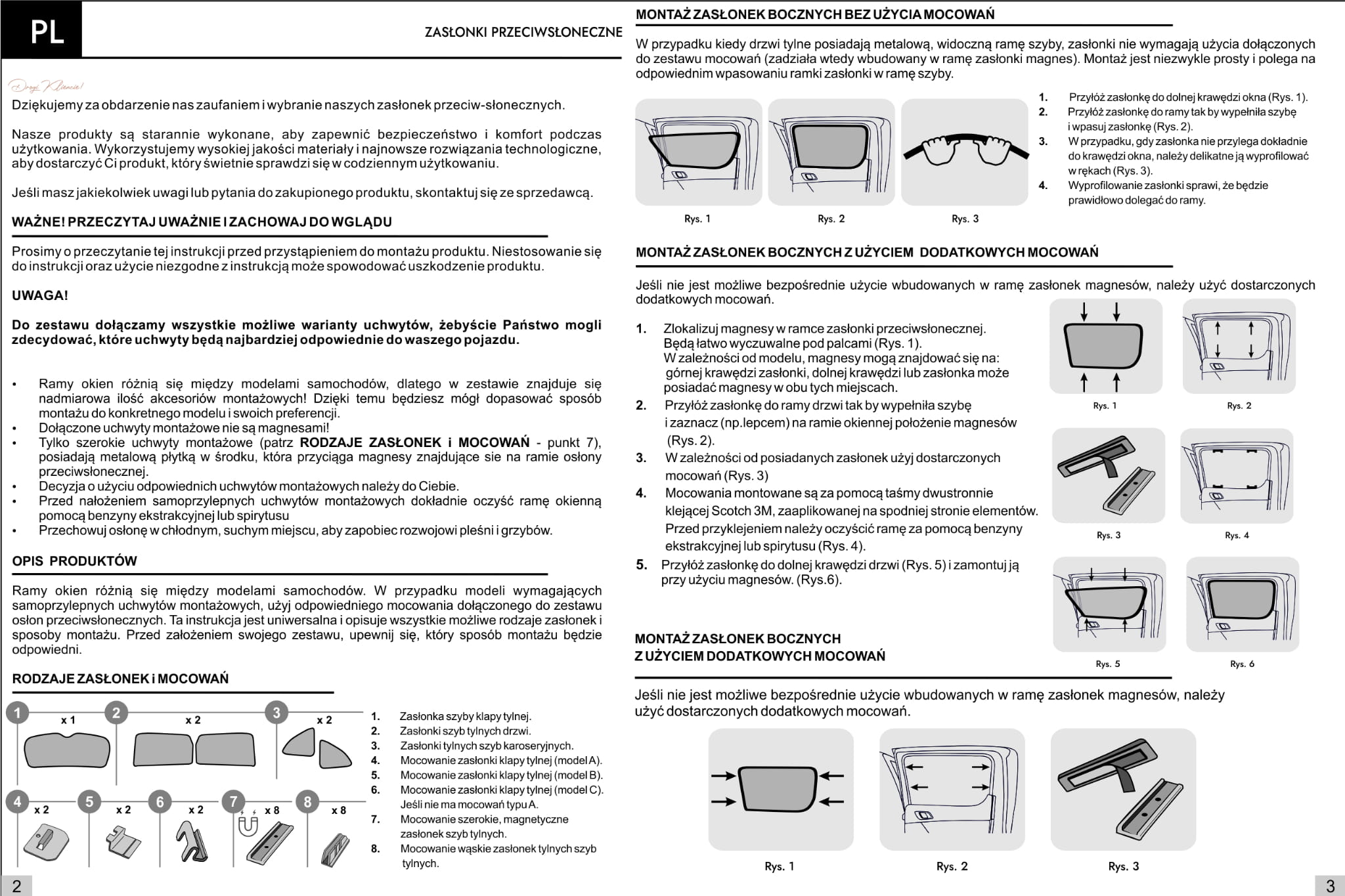 Dedykowane zasłonki pozwalają cieszyć się jazdą z opuszczonymi szybami (nawet w ruchu), likwidując dyskomfort spowodowany nadmiernym nasłonecznieniem. Zasłonki tłumią przenikanie promieni słonecznych, blokując nawet 70% promieni UV, nie blakną na słońcu, ani nie odkształcają się w skutek wysokiej temperatury. Nasz produkt jest dedykowany do konkretnego modelu, co gwarantuje idealne spasowanie z ramą szyby. Dzięki temu mamy pewność, że, podczas jazdy z otwartymi szybami do wnętrza samochodu nie wlecą żadne owady.