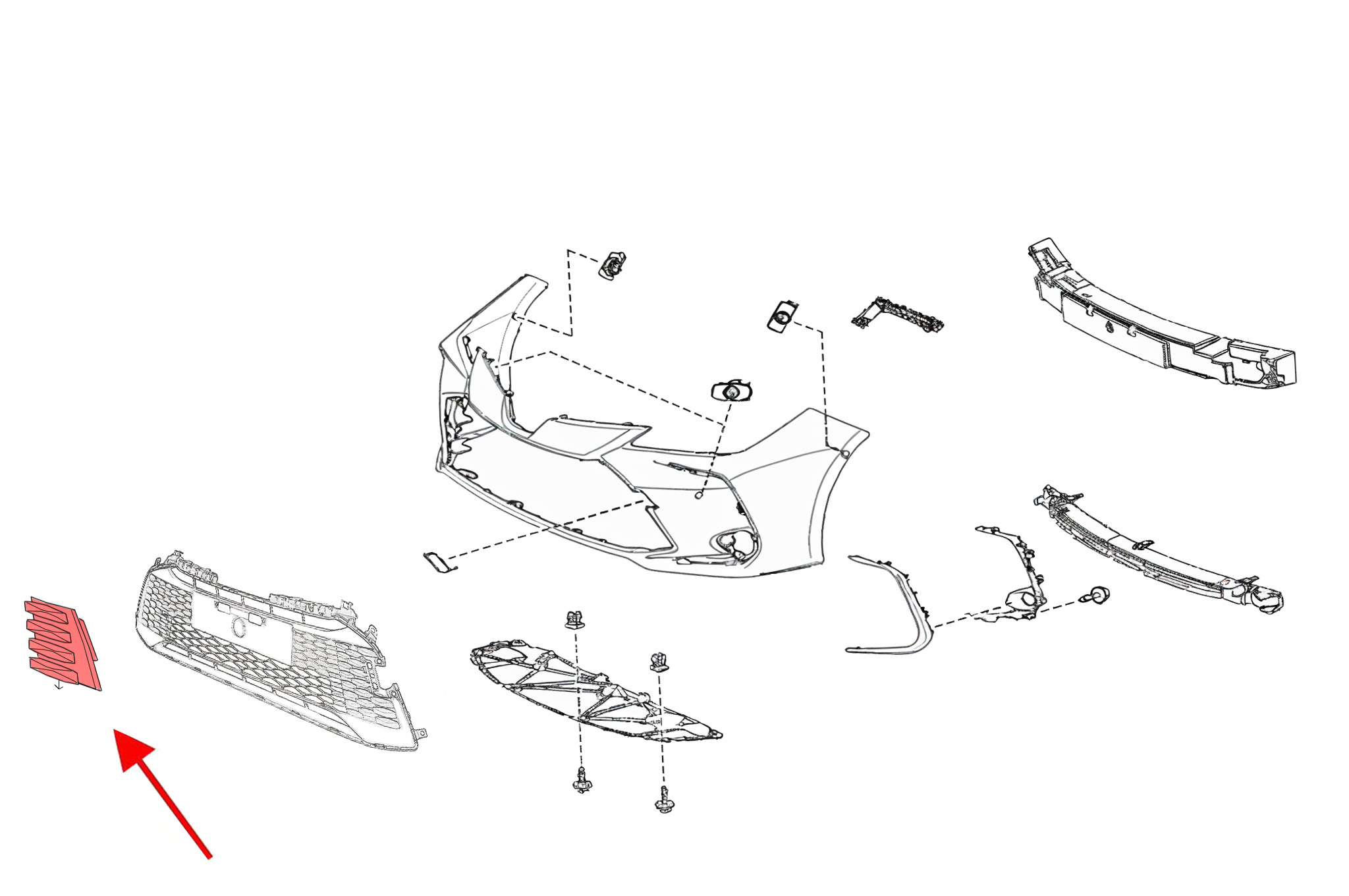 TOYOTA COROLLA XII E21 2022+ SEDAN PO FACELIFTINGU ZAŚLEPKA HAKA HOLOWNICZEGO W KRATKĘ PRZEDNIEGO ZDERZAKA 5312802380