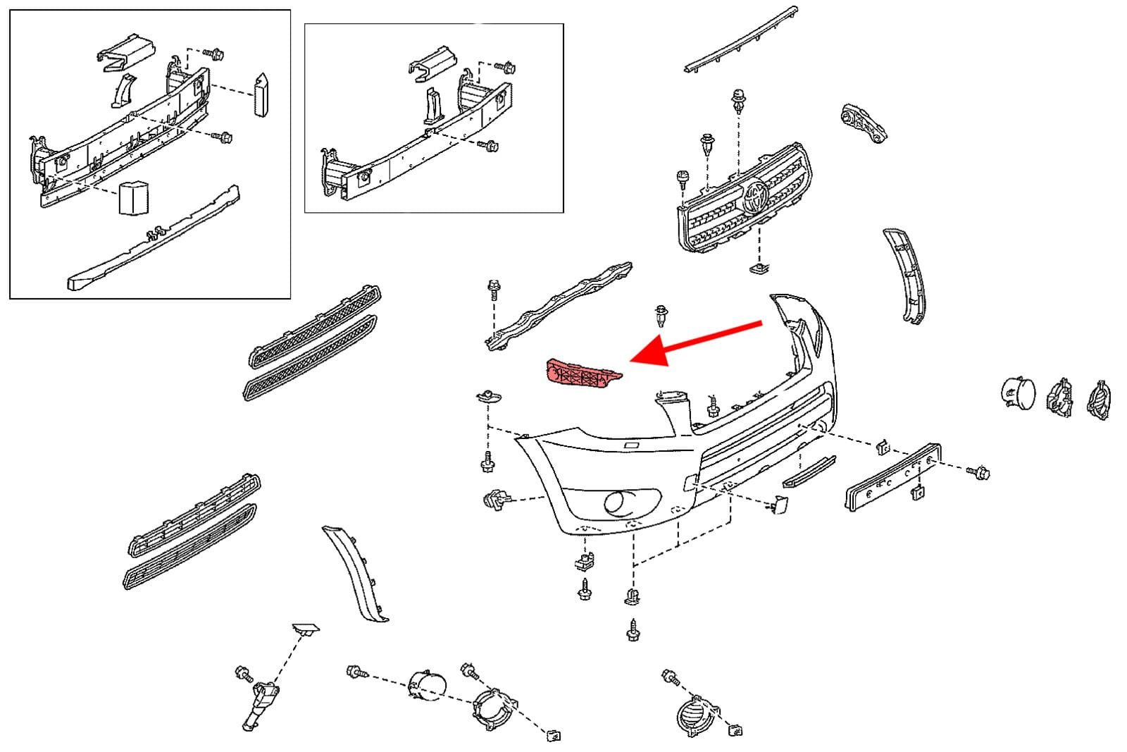 Element mocujący poszycie zderzaka przedniego, ślizg prawy, dla TOYOTA RAV4 IV (XA40) 2013-2019.
