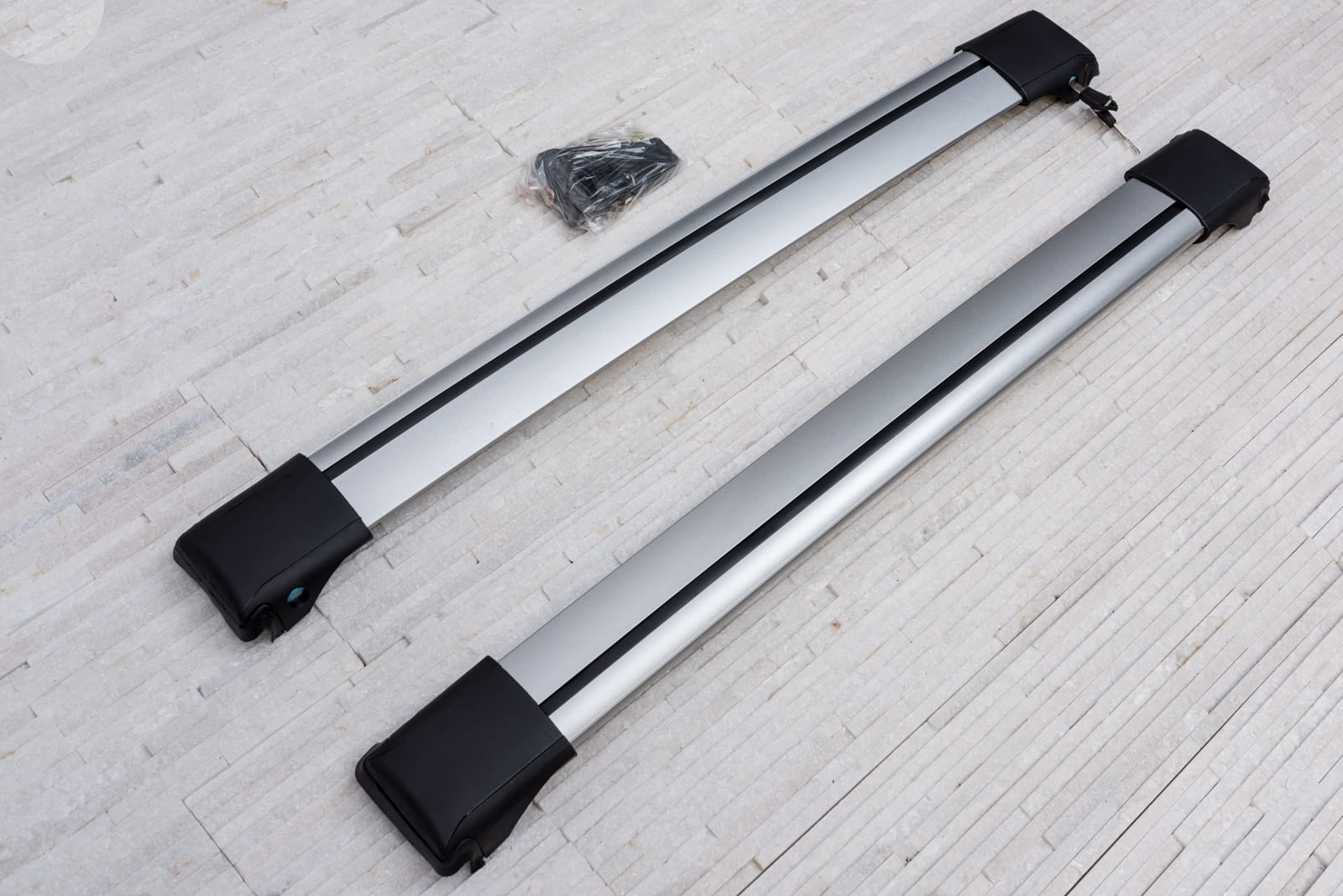 Produkt fabrycznie nowy, oryginalnie zapakowany, w kolorze srebrnym. W komplecie znajdują się: dwie belki oraz dwa kluczyki.