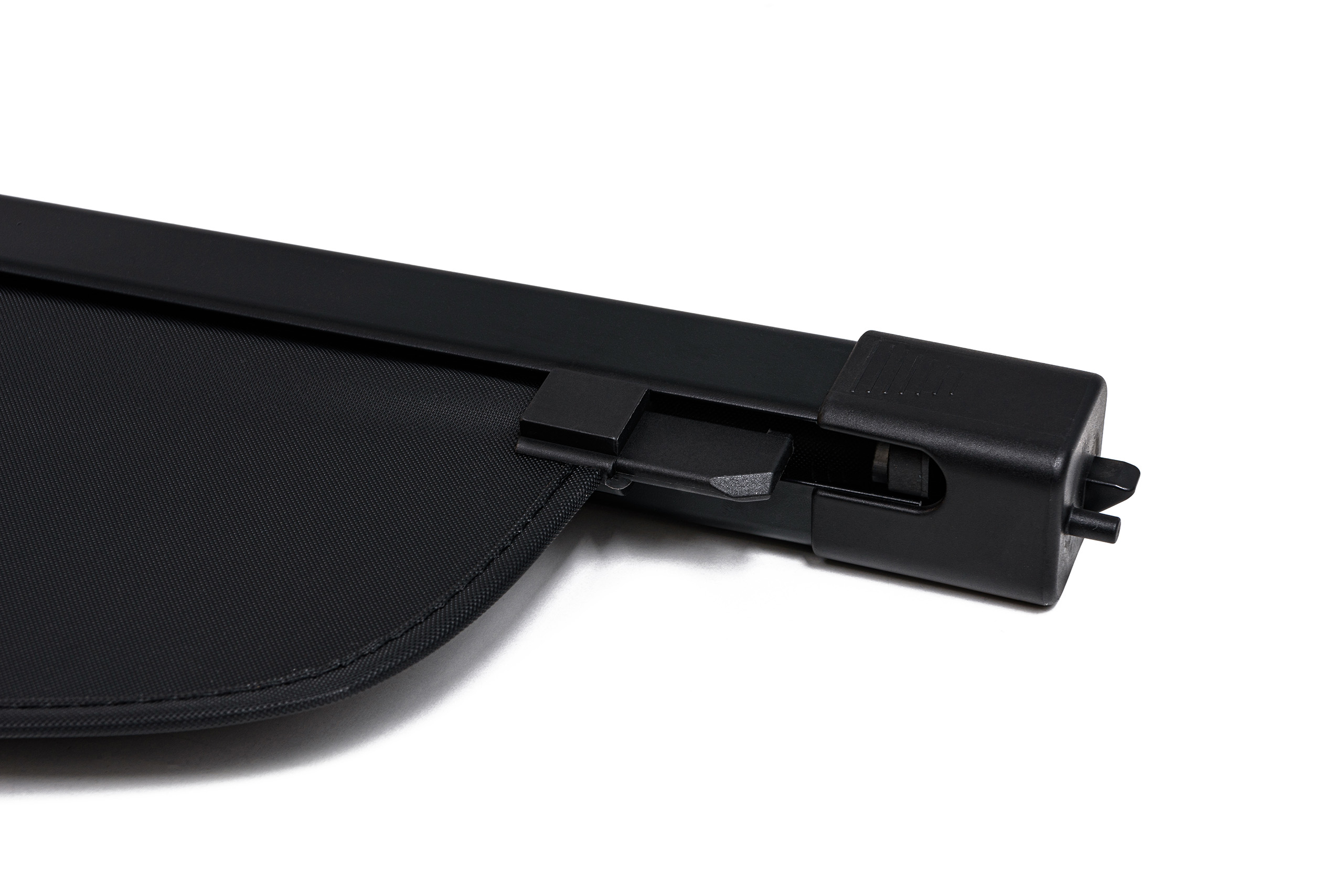 Elegancki czarny kolor oraz estetyka wykonania sprawiają, że roleta doskonale współgra ze stylem samochodu. Poszycie zasłony wykonane zostało z materiału odpornego na uszkodzenia oraz odbarwienia spowodowane nasłonecznieniem i zmianami temperatur, dzięki czemu produkt doskonale prezentuje się przez długi czas. Solidna kaseta oraz aluminiowa płyta zapewniają trwałość konstrukcji i wygodę użytkowania rolety. Kaseta zaprojektowana została w taki sposób, aby umożliwić stabilne zamocowanie w oryginalnych, fabrycznych miejscach montażowych za tylnymi fotelami.