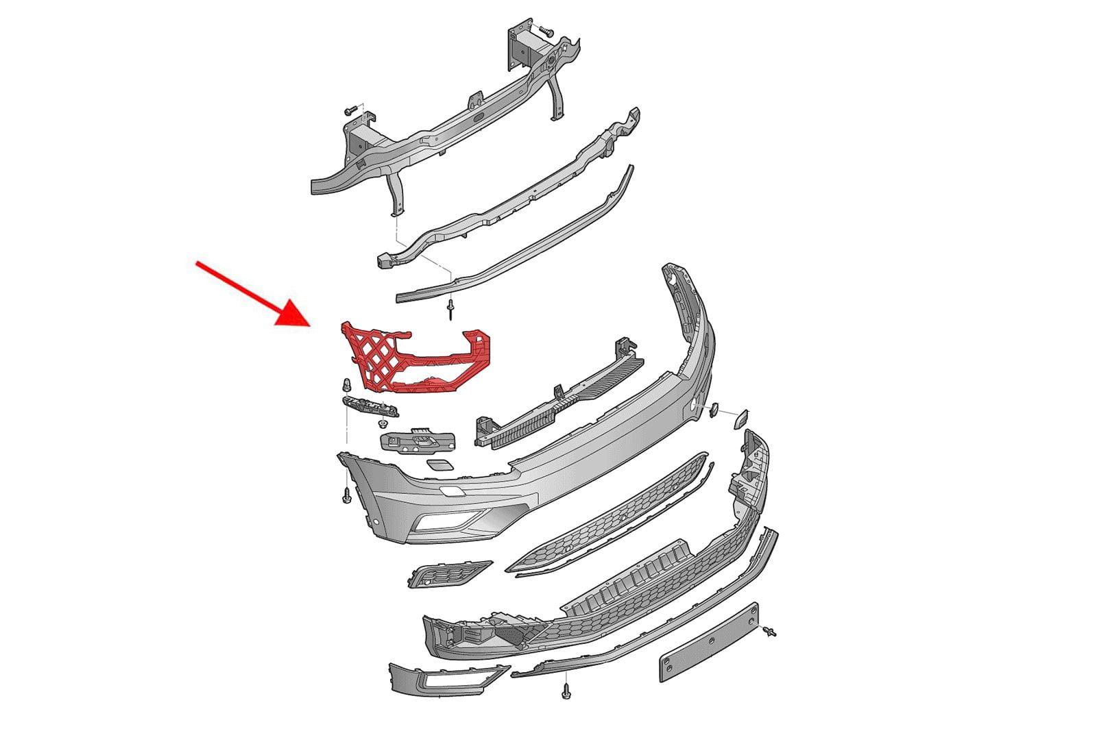 Ślizg, mocowanie przedniego zderzaka, prawe, dla VW TIGUAN II R-LINE 2016+.