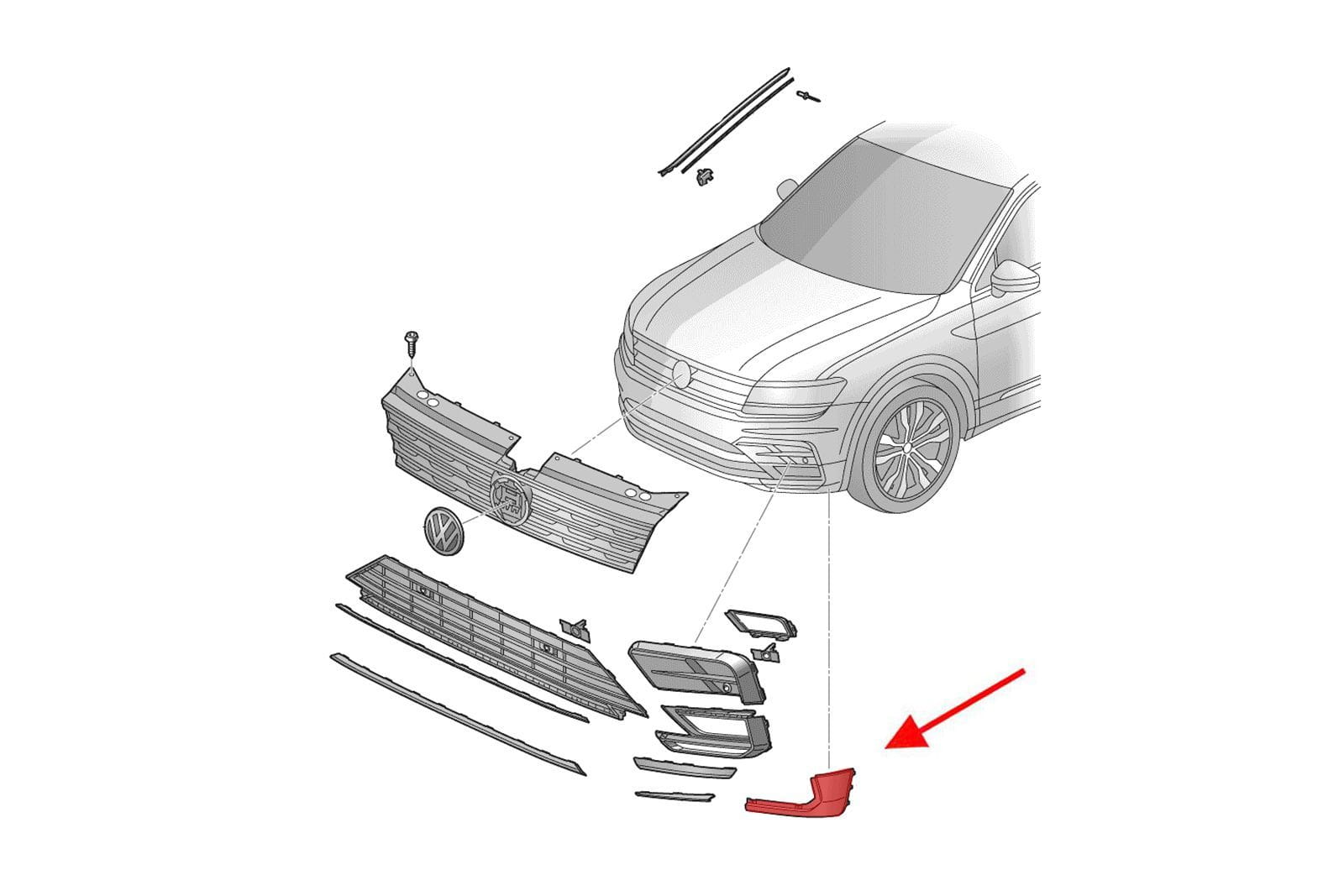 Kratka przedniego zderzaka, lewa, dla VW TIGUAN II R-LINE 2016+.