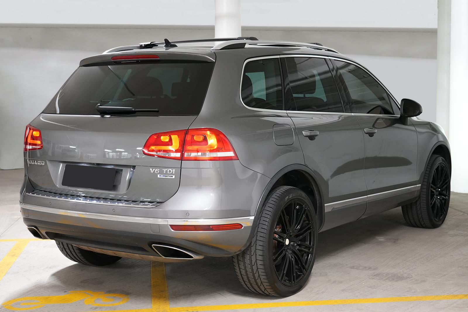 Chromowana listwa tylnego zderzaka, środkowa, dla VW TOUAREG II (7P) 2014-2018 (wersja po faceliftingu).