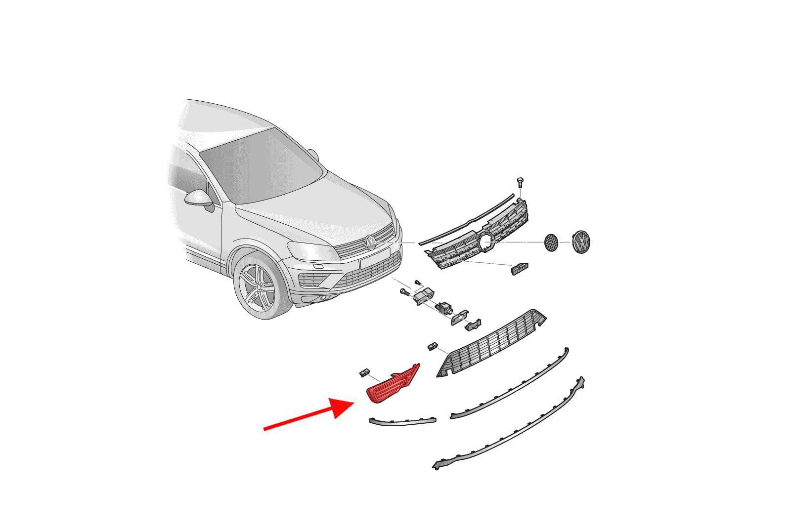 Kratka przedniego zderzaka prawa, dla VW TOUAREG II (7P) 2014-2018 (po faceliftingu).
