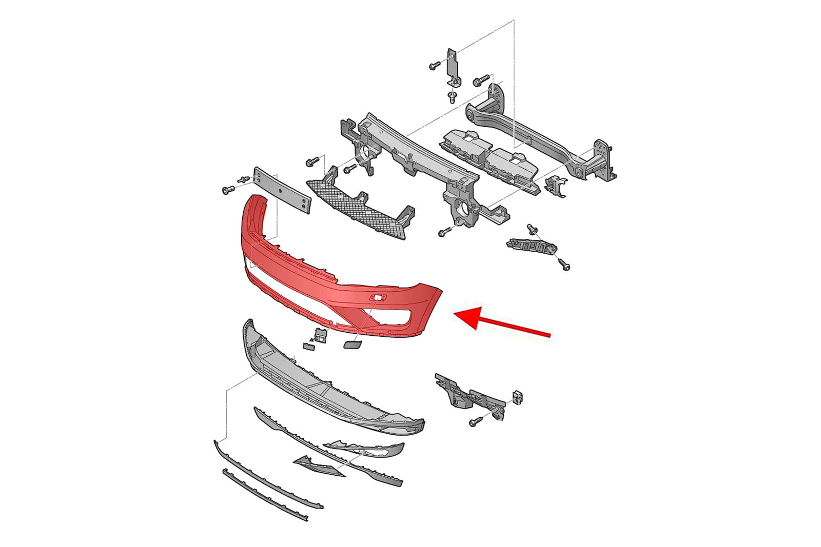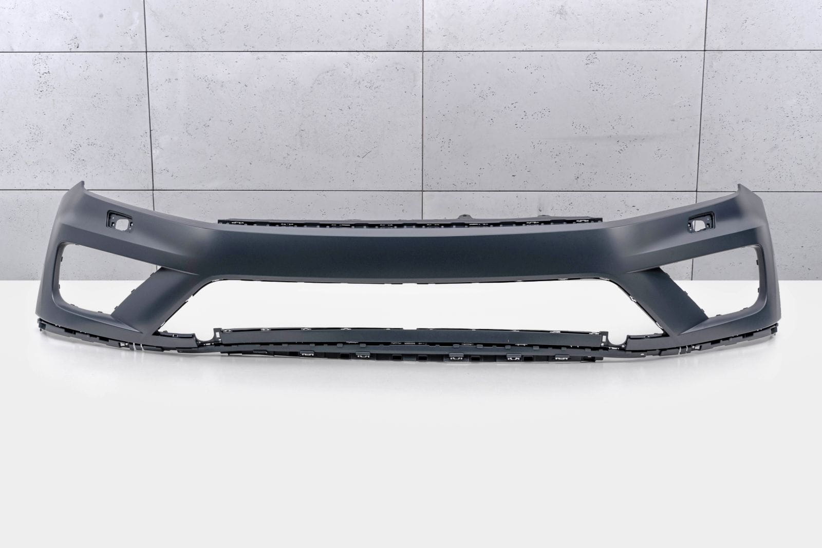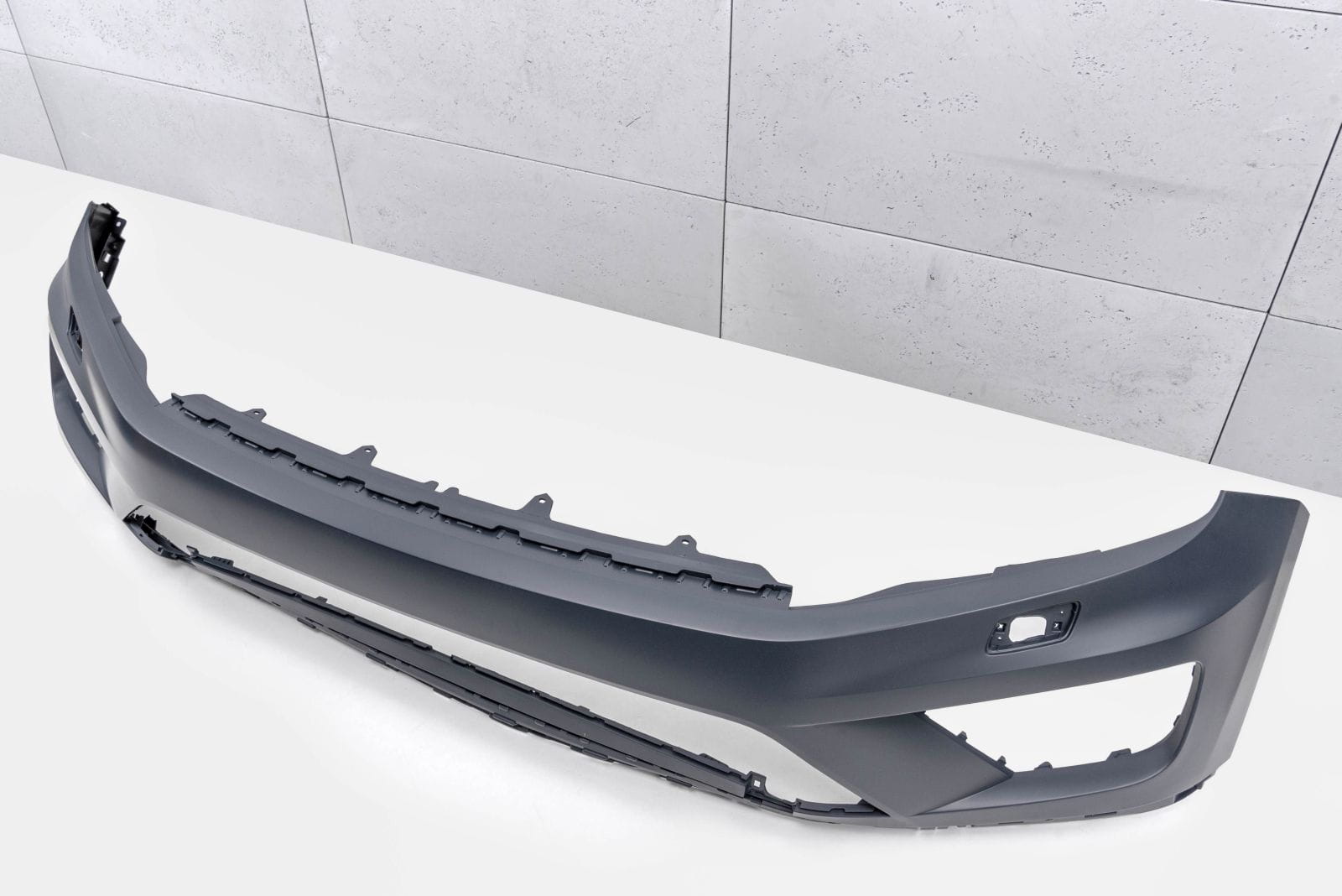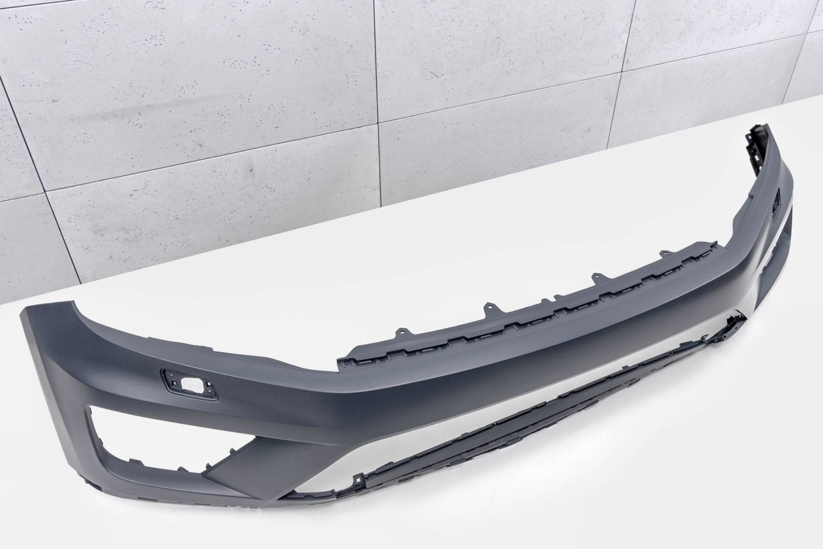 Zderzak przedni górny, dla VW TOUAREG II (7P) 2014-2018 (po faceliftingu). Zderzak posiada otwory pod spryskiwacze.