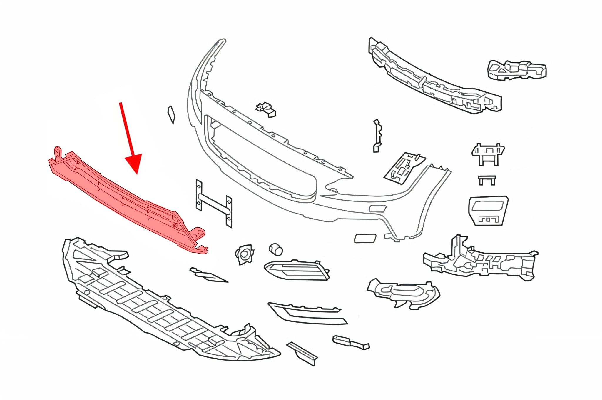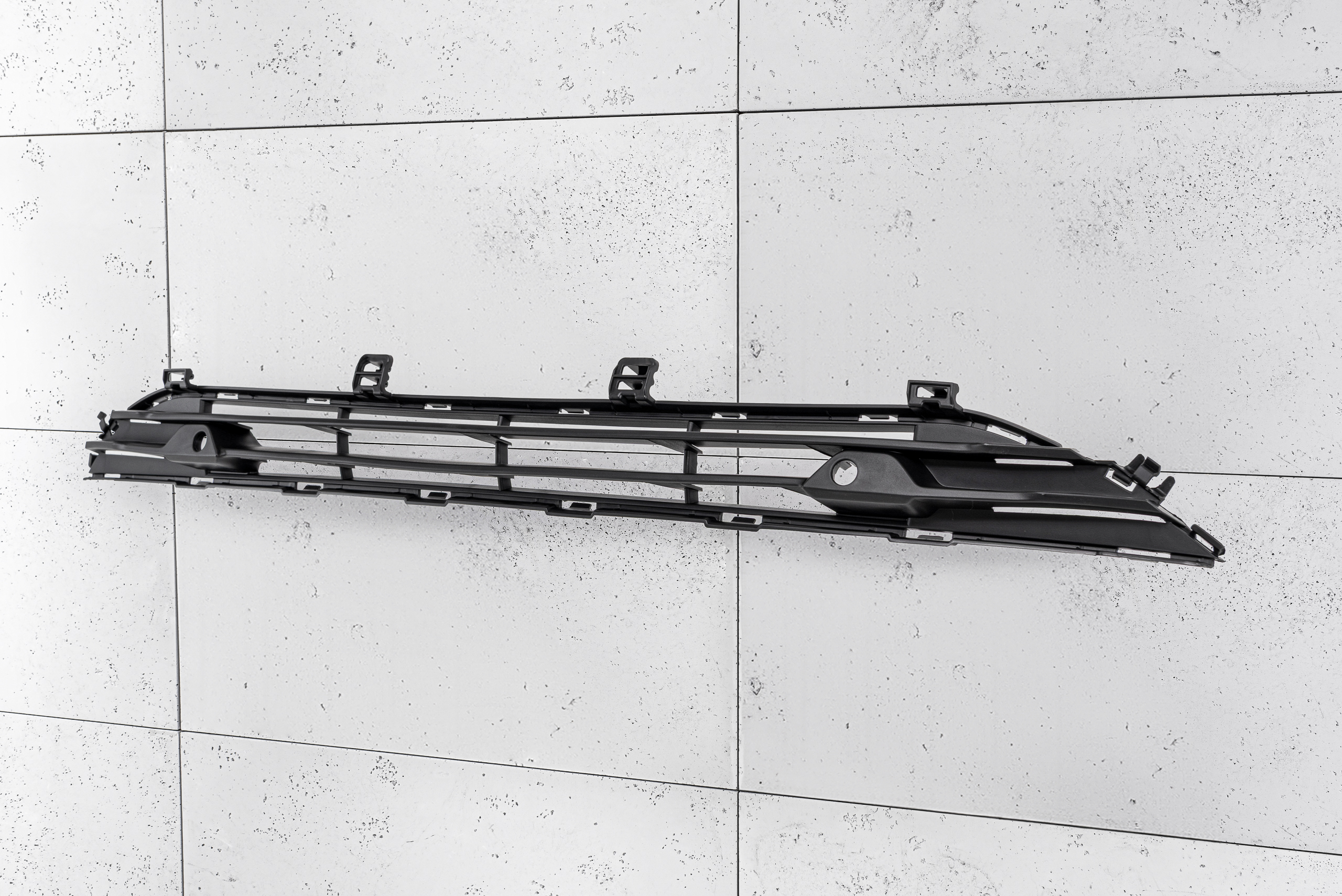 Kratka środkowa przedniego zderzaka, z otworami pod czujniki parkowania PDC, dla VOLVO S90 2016-2020 (wersja przed faceliftingiem).