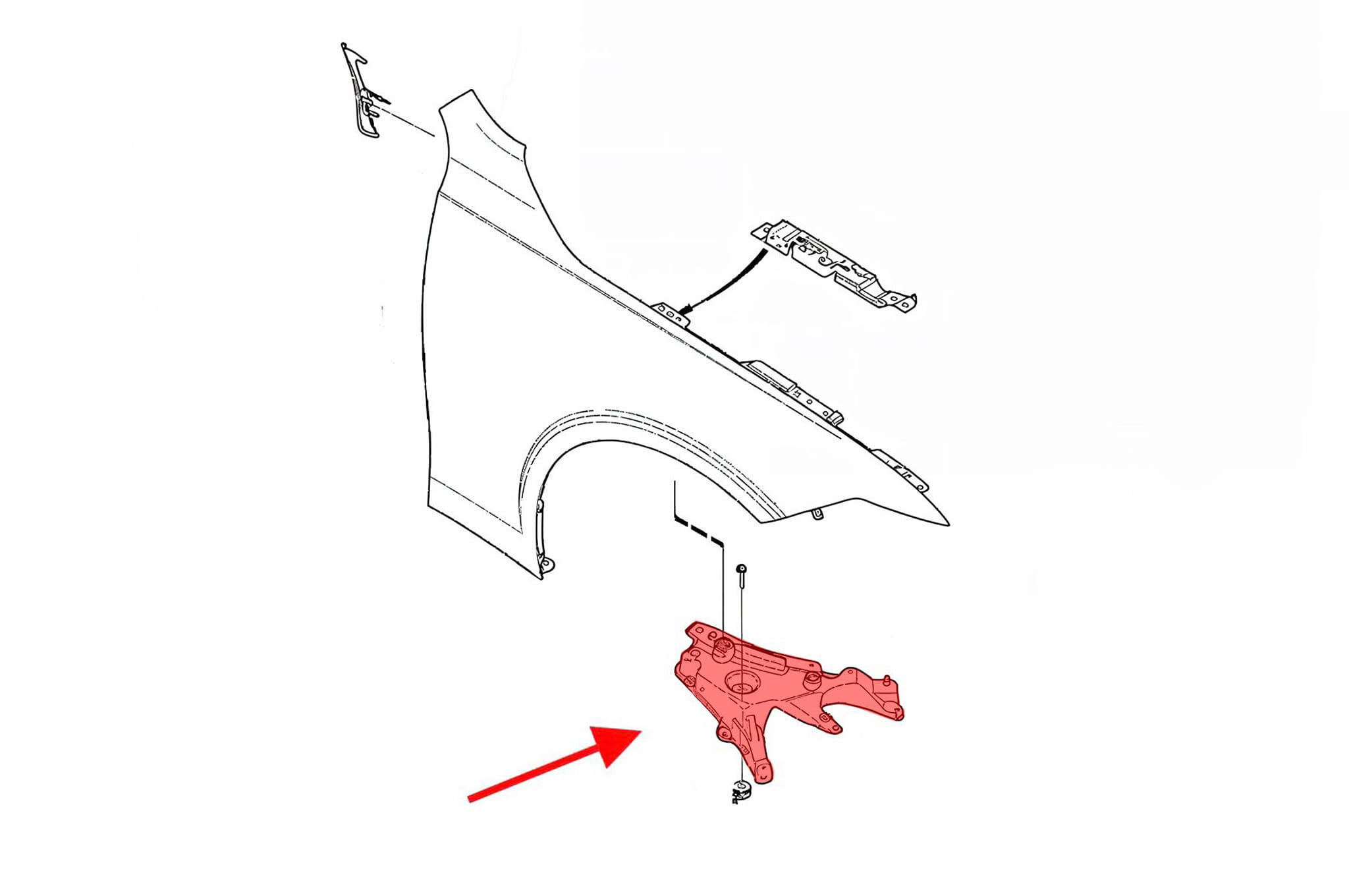 Mocowanie przedniego błotnika, wspornik, ślizg przedni prawy, dla VOLVO S90 2016+.