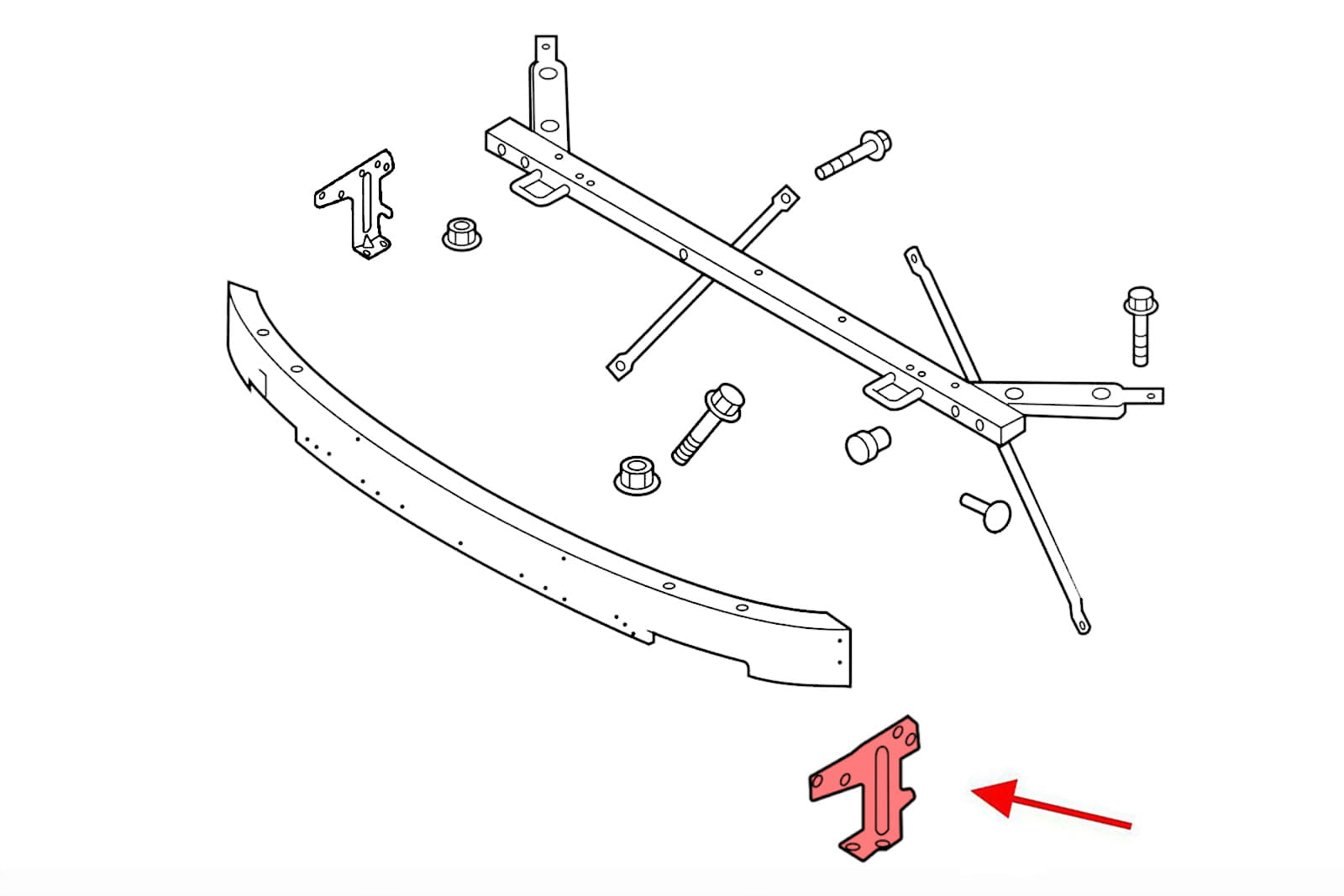 Uchwyt, mocowanie przedniej belki, wzmocnienia zderzaka, lewe, dla VOLVO S90 2016+.