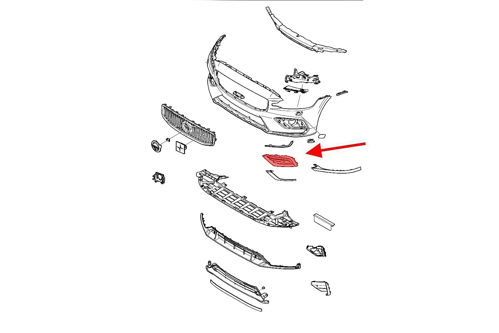 Kratka zderzaka przedniego z otworem pod czujnik parkowania PDC, lewa, dla VOLVO V60 II 2018+.