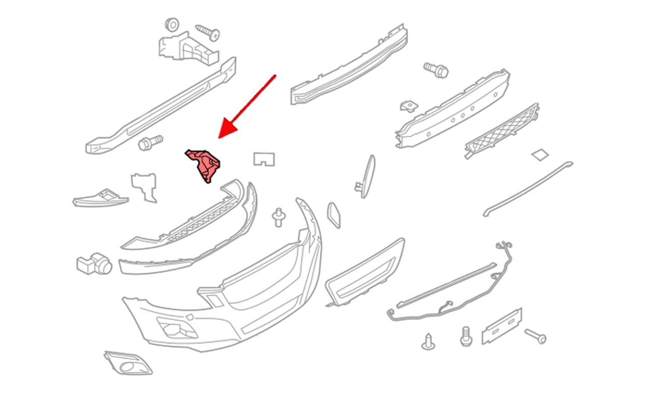 Element mocujący poszycie przedniego zderzaka / ślizg prawy, dla VOLVO XC60 I 2008-2013 (przed faceliftingiem).