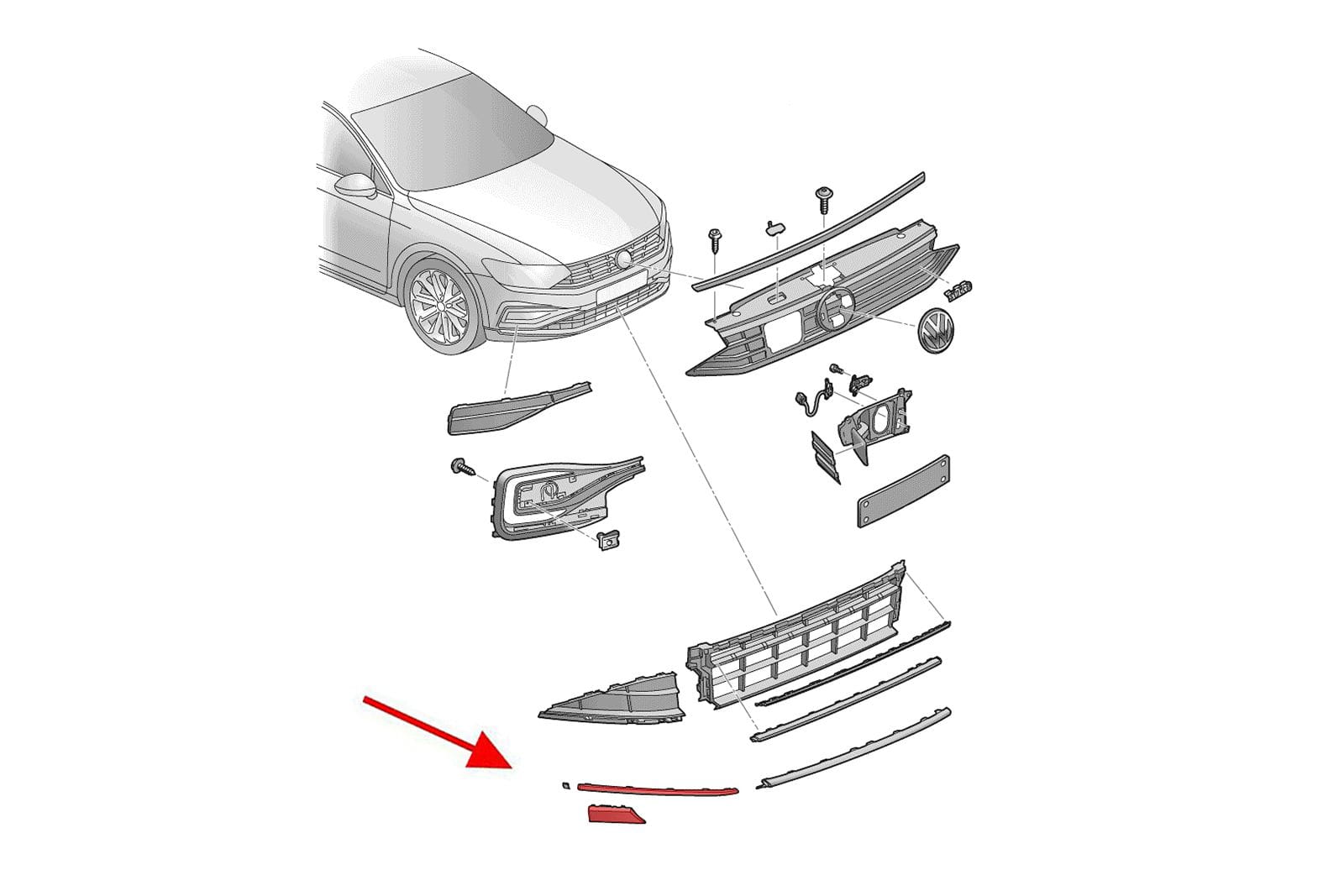 Chromowana listwa przedniego zderzaka, prawa, dla VOLKSWAGEN PASSAT B8 R-LINE 2019+.