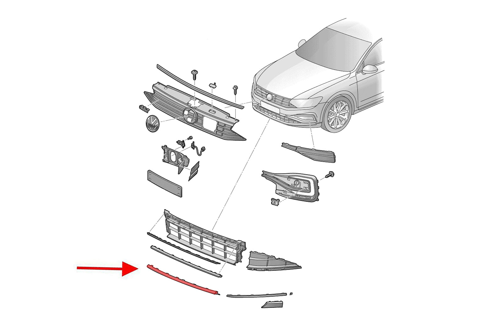 VW PASSAT B8 R-LINE 2019+ CHROMOWANA LISTWA PRZEDNIEGO ZDERZAKA ŚRODKOWA 3G0853245D