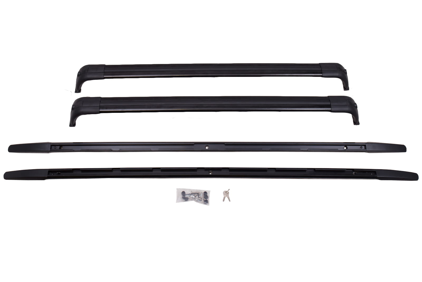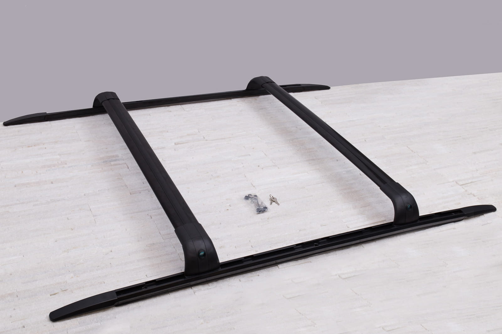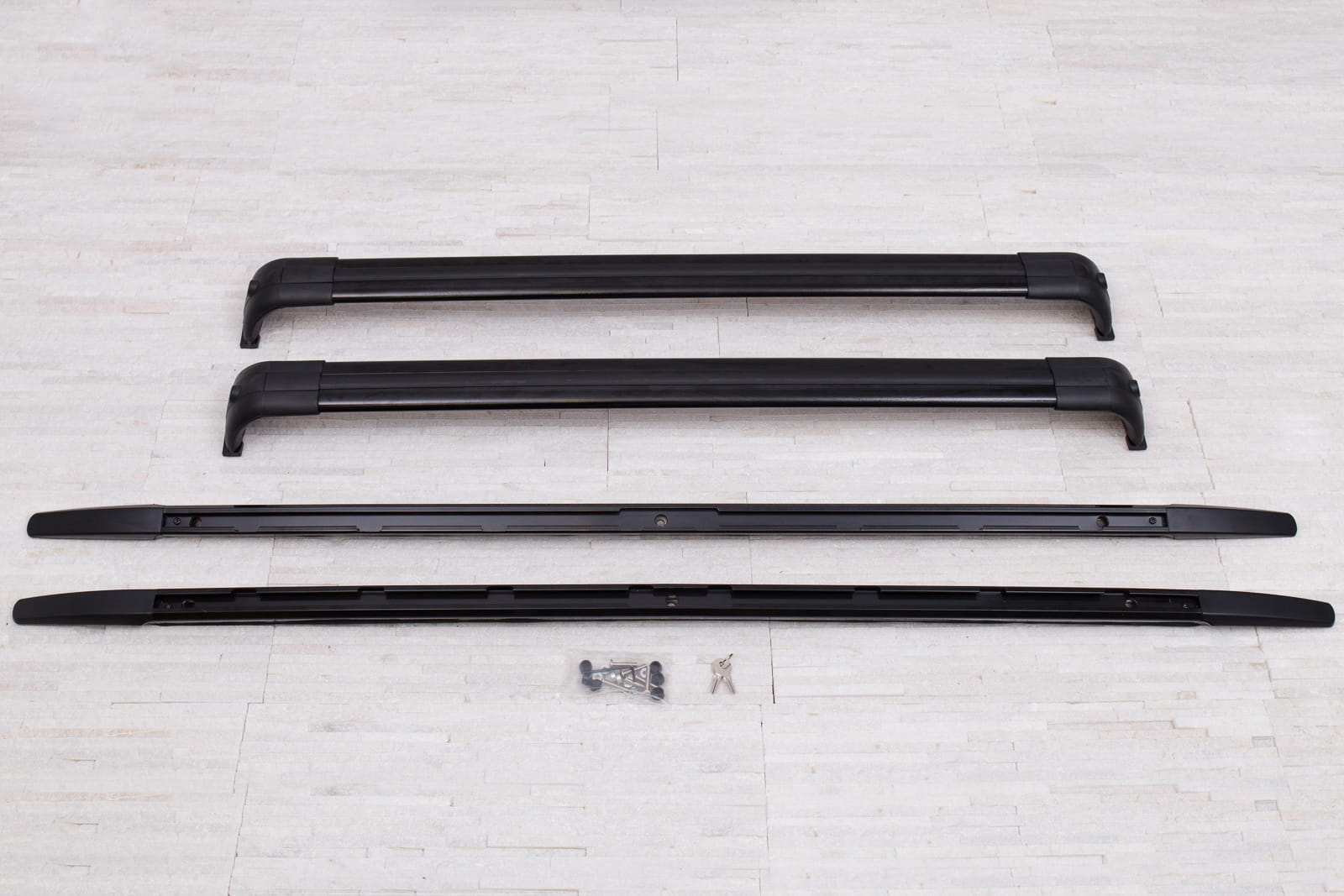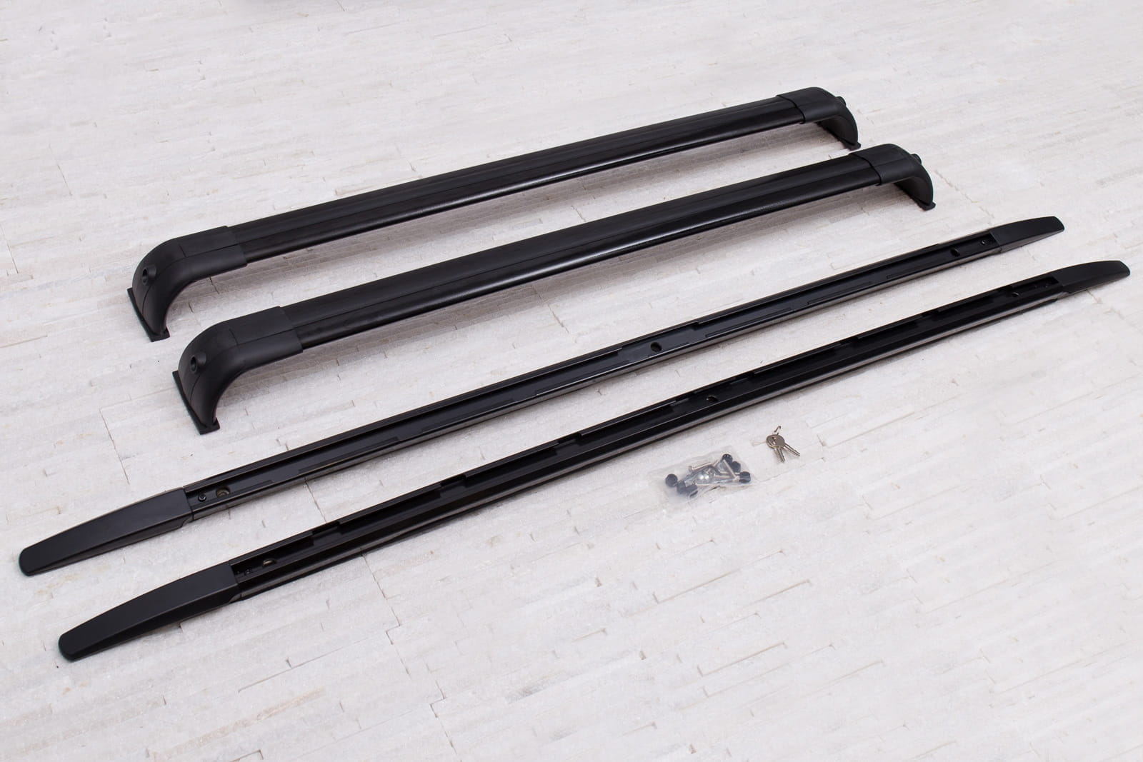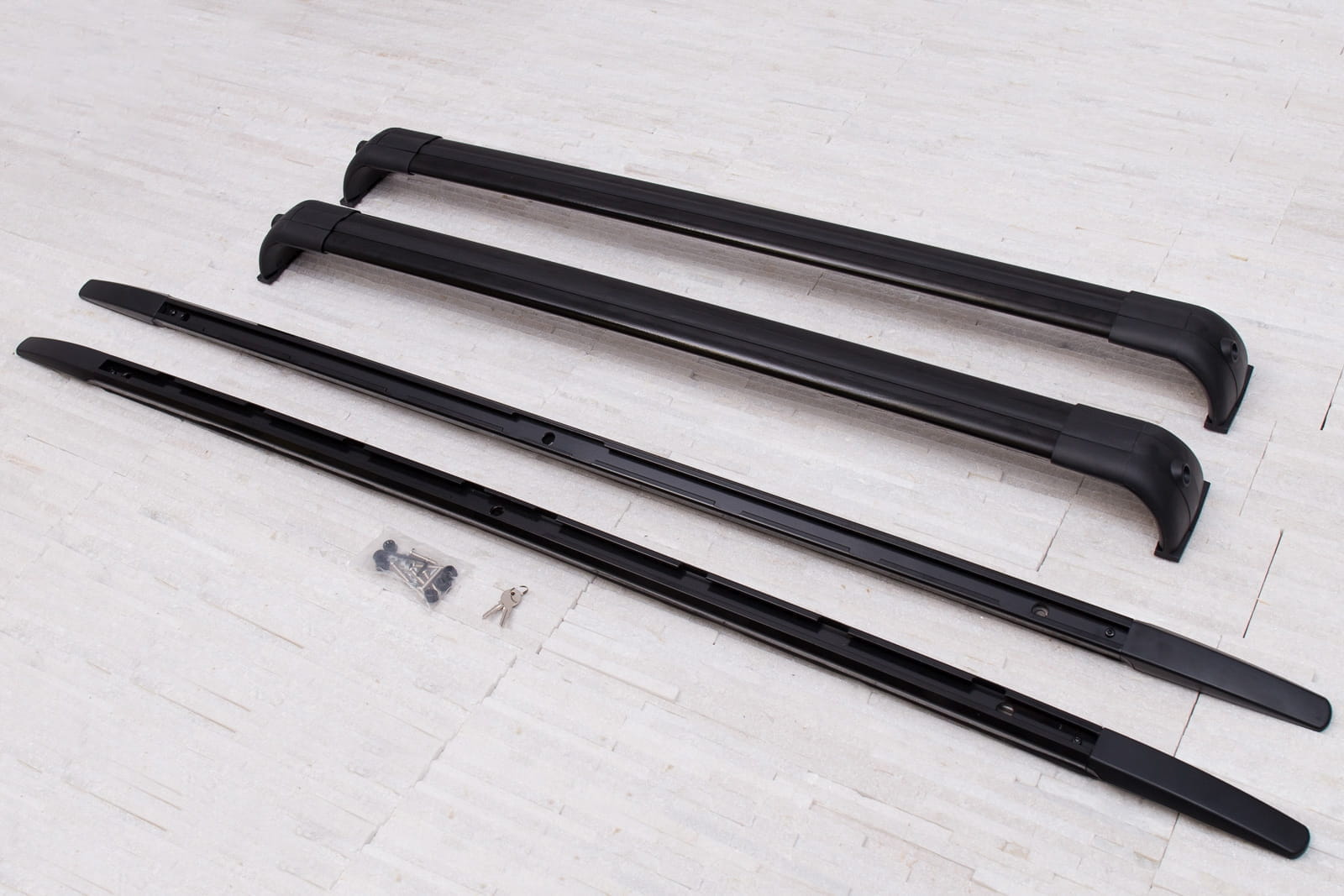 W zestawie znajduje się komplet relingów na stronę lewą i prawą oraz dwie belki.