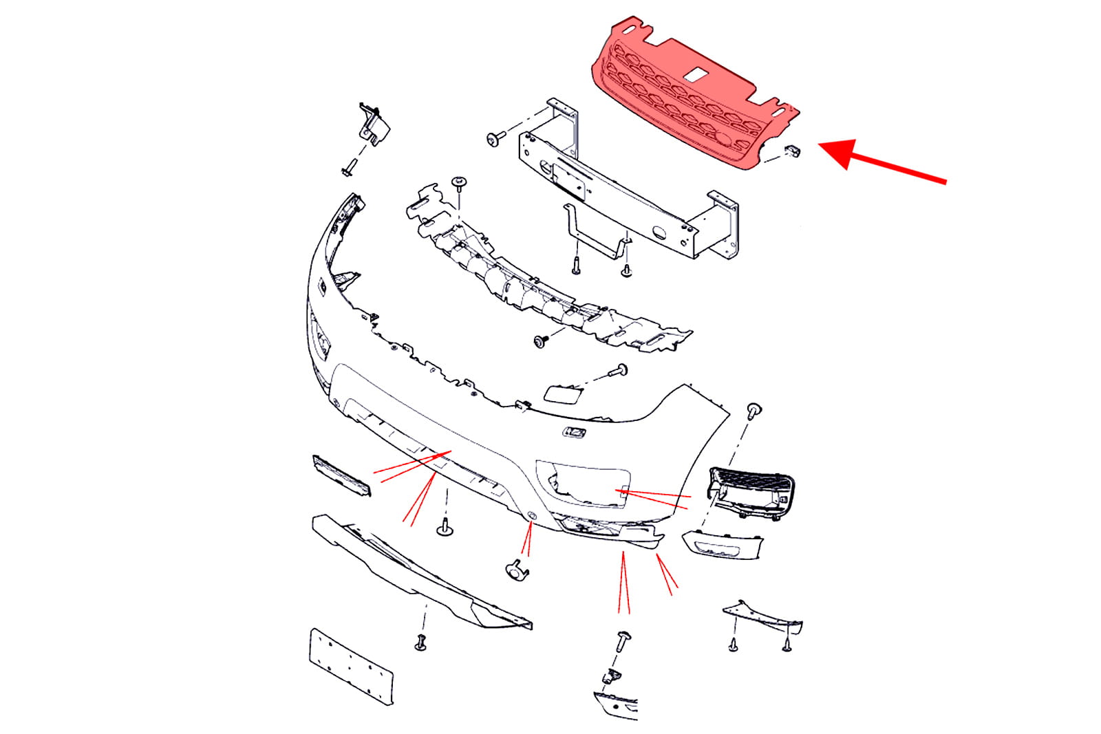 Grill czarny, atrapa chłodnicy dla RANGE ROVER SPORT (L494) 2013-2017 (wersja przed faceliftingiem).