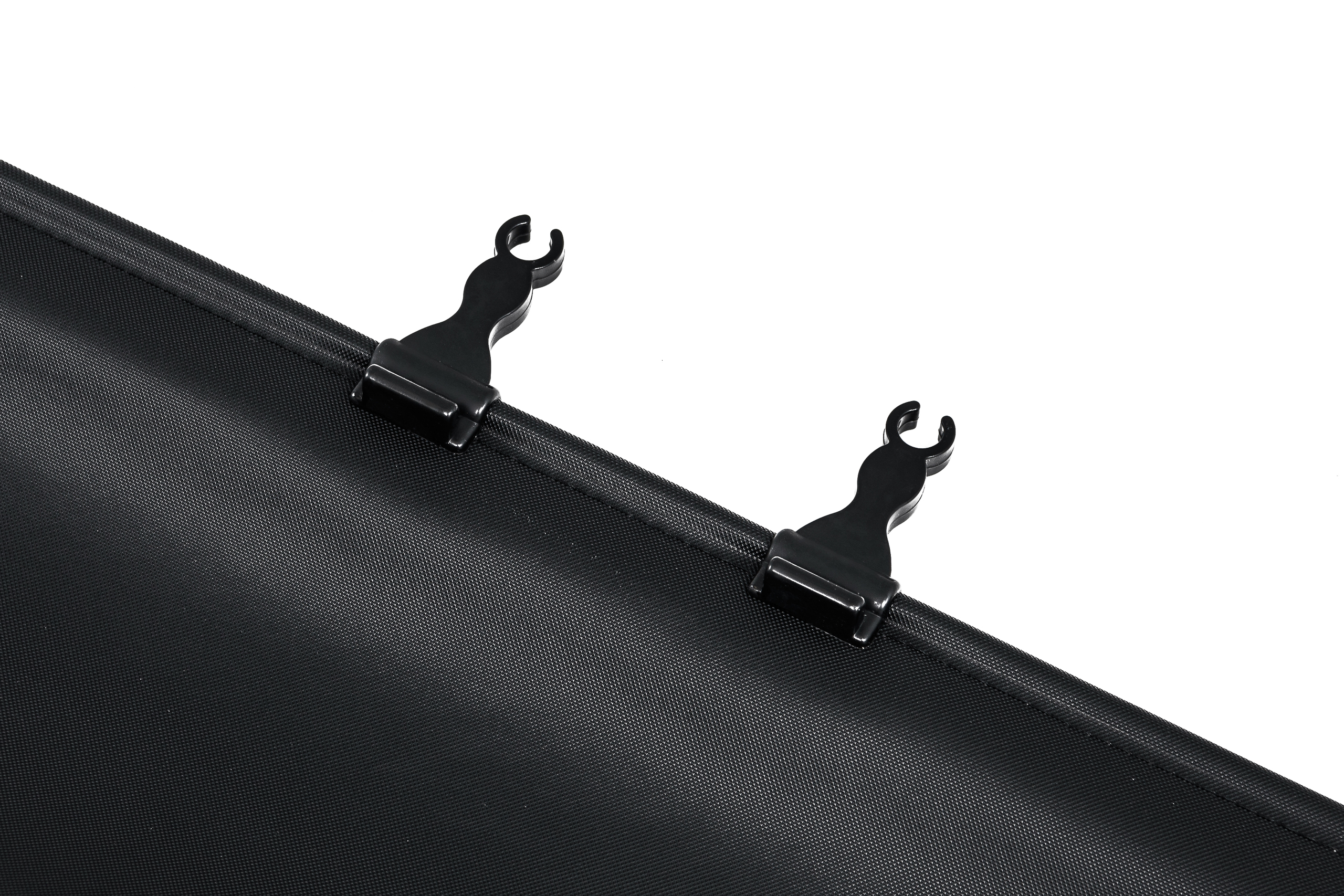 Elegancki czarny kolor oraz estetyka wykonania sprawiają, że roleta doskonale współgra ze stylem samochodu. Poszycie zasłony wykonane zostało z materiału odpornego na uszkodzenia oraz odbarwienia spowodowane nasłonecznieniem i zmianami temperatur, dzięki czemu produkt doskonale prezentuje się przez długi czas. Solidna kaseta oraz aluminiowa płyta zapewniają trwałość konstrukcji i wygodę użytkowania rolety. Kaseta zaprojektowana została w taki sposób, aby umożliwić stabilne zamocowanie w oryginalnych, fabrycznych miejscach montażowych za tylnymi fotelami.