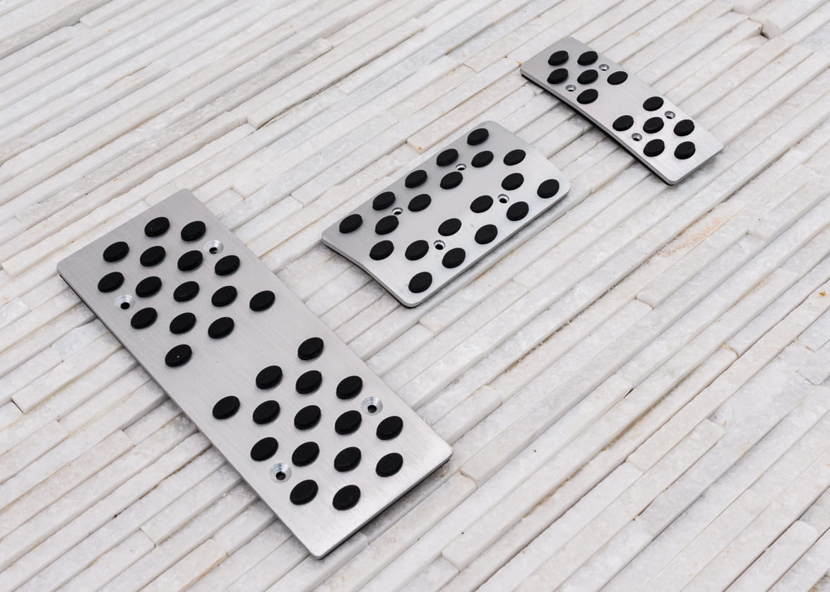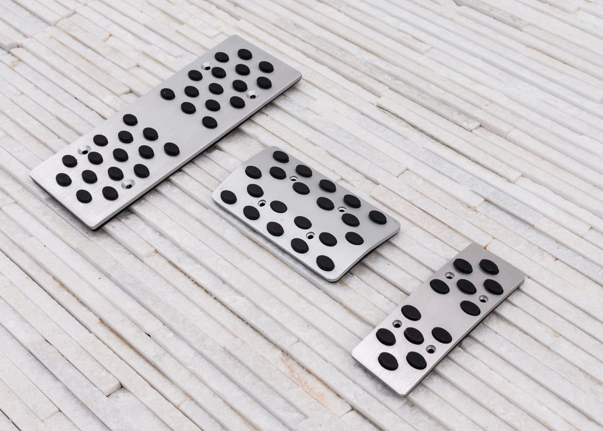 Komplet nakładek zaprojektowany został tak, aby zwiększyć komfort kierowcy podczas prowadzenia samochodu. Zintegrowane, gumowe elementy zapobiegają ślizganiu się podeszwy, co umożliwia pewniejsze operowanie pedałami podczas jazdy. Zastosowanie nakładek poprawia kontrolę nad autem w ekstremalnych sytuacjach, dzięki czemu mogą one mieć niebagatelny wpływ na bezpieczeństwo kierowcy i pasażerów. Nakładki wykonane zostały z materiałów wysokiej jakości, dzięki czemu są nie tylko trwałe, ale także prezentują się znakomicie przez długi czas. Dzięki zastosowaniu szczotkowanego aluminium, zestaw wspaniale komponuje się z innymi elementami wykończenia, podkreślając tym samym elegancki, dynamiczny charakter samochodu. Zapraszamy do zakupu!