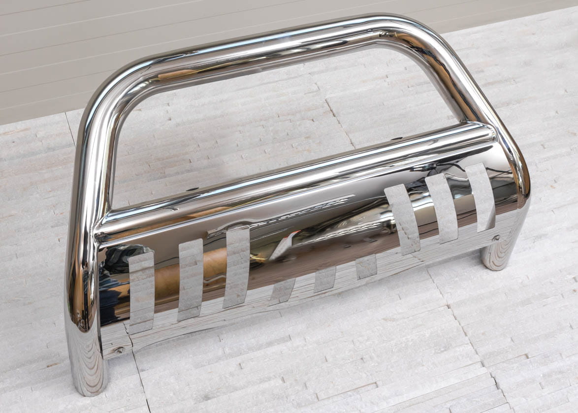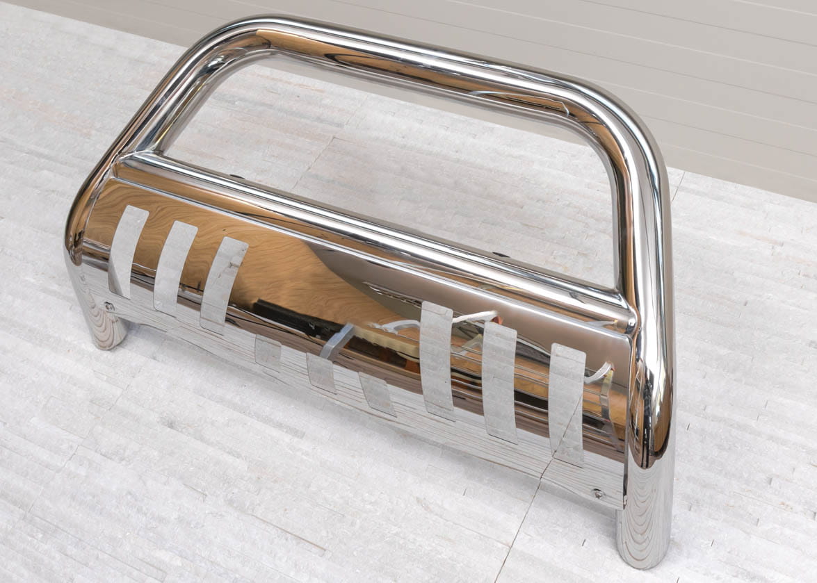 Rury są dedykowane do modelu SUZUKI GRAND VITARA II (JT) 2006-2014. Orurowanie przednie doskonale sprawdza się w podczas jazdy w terenie, zmniejszając ryzyko uszkodzenia przodu samochodu. Jest to także niezastąpiona ochrona w miejskich warunkach, ograniczająca zniszczenia w razie kolizji. Przednie rury podkreślają pełen mocy wygląd samochodu, uzupełniając sportową stylistykę. Produkt wykonany z wysokiej jakości stali nierdzewnej, polerowanej (stal austenityczna, kwasoodporna, chromowo-niklowa). Dzięki zastosowaniu wysokiej jakości materiału, rury nie rdzewieją i nie zmieniają koloru.