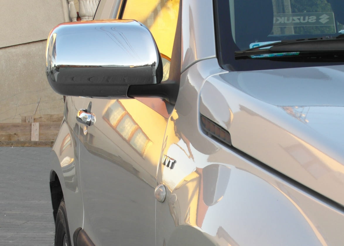 Dekoracyjne, chromowane nakładki na lusterka podkreślają dynamiczny styl Suzuki. Nakładki, dzięki lustrzanemu połyskowi chromowanej powierzchni, dopełniają stylizację samochodu, nadając mu zindywidualizowany charakter. Produkt wykonany z wysokiej jakości tworzywa ABS.