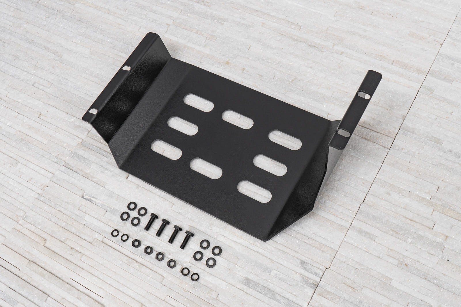 Osłona wykonana jest z bardzo wytrzymałej stali o grubości 4 mm, malowanej proszkowo na kolor czarny. Montowana w fabrycznie przeznaczone do tego miejsca w podwoziu samochodu. Nie wymagają wiercenia.
