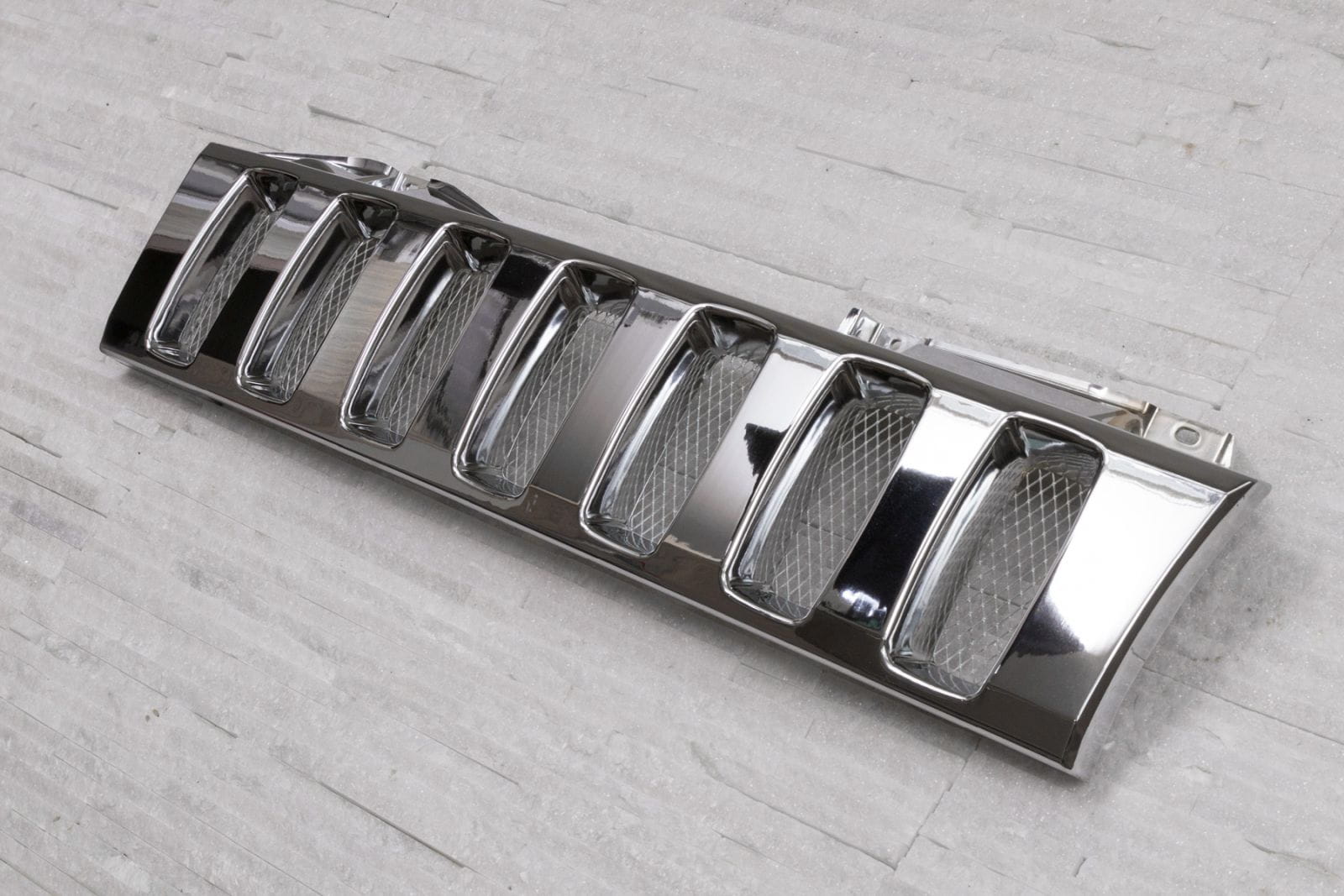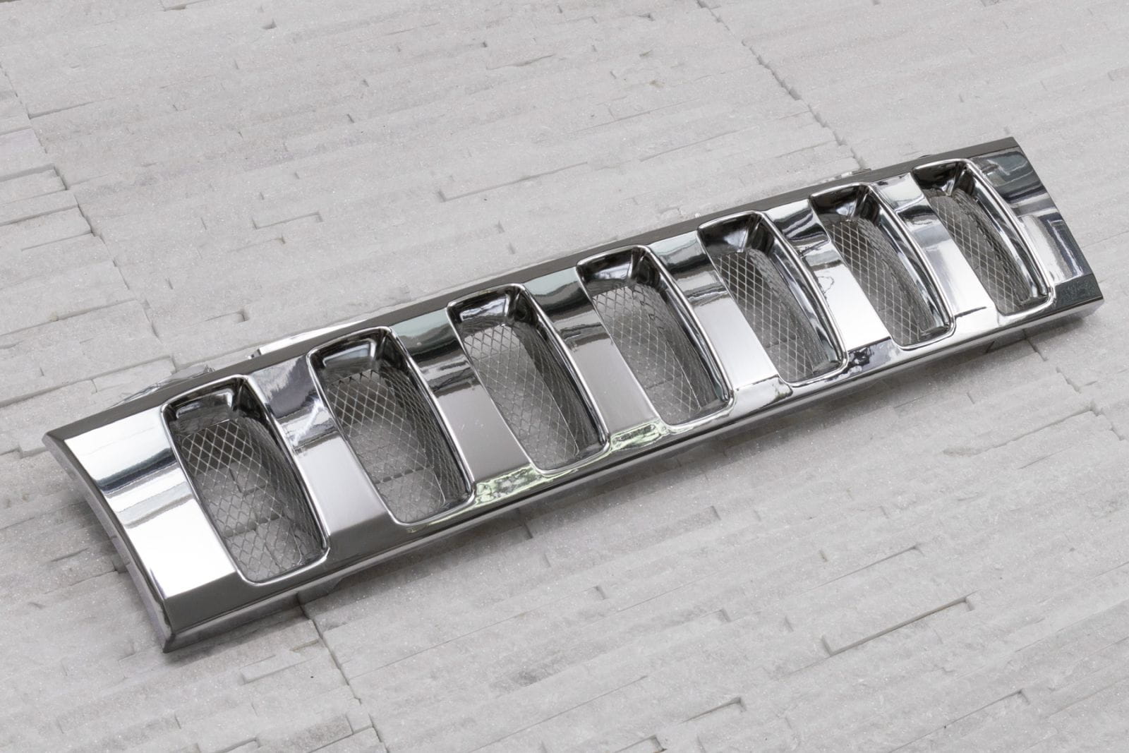 Dekoracyjna nakładka grilla pozwala wykreować zupełnie nowy styl Suzuki Jimny. Zaprojektowana tak, by wydobyć dekoracyjne walory grilla: głęboki, metaliczny połysk dodaje eleganckiego, luksusowego charakteru, a idealnie dopasowany kształt przyciąga uwagę do przedniej części samochodu, uwydatniając jego moc i sportową duszę. Element wykonany z wysokiej jakości chromowanego tworzywa ABS.