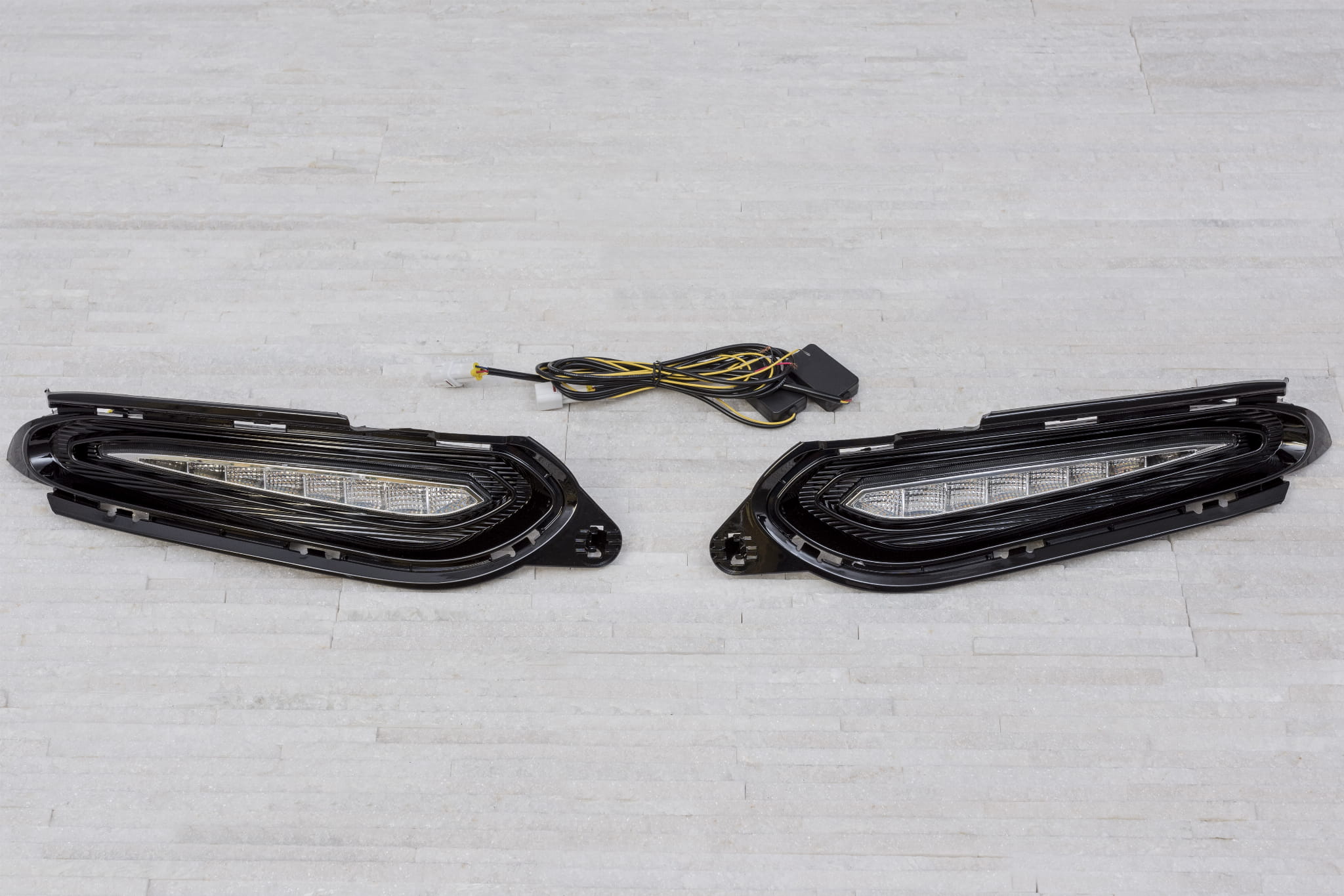 Dzięki zastosowaniu technologii LED, lampy nie tylko zużywają mniej energii, ale także znakomicie się prezentują, wprowadzając do stylizacji samochodu nowoczesny akcent. Światła LED emitują silne białe światło (5600K), dzięki któremu samochód jest lepiej widoczny, co ma wpływ na zwiększenie bezpieczeństwa na drodze. Elementy świateł wykonane zostały z wysokiej jakości tworzyw. W komplecie znajdują się dwie lampy wraz z okablowaniem i jednostką sterującą. Światła montowane są w miejsce fabrycznej kratki halogenów przednich. Dzięki temu, że produkt dedykowany jest konkretnemu modelowi samochodu możesz mieć pewność, że oferowane lampy nie będą wymagały żadnych dodatkowych przeróbek w trakcie montażu. Zalecamy montaż profesjonalny. Parametry: