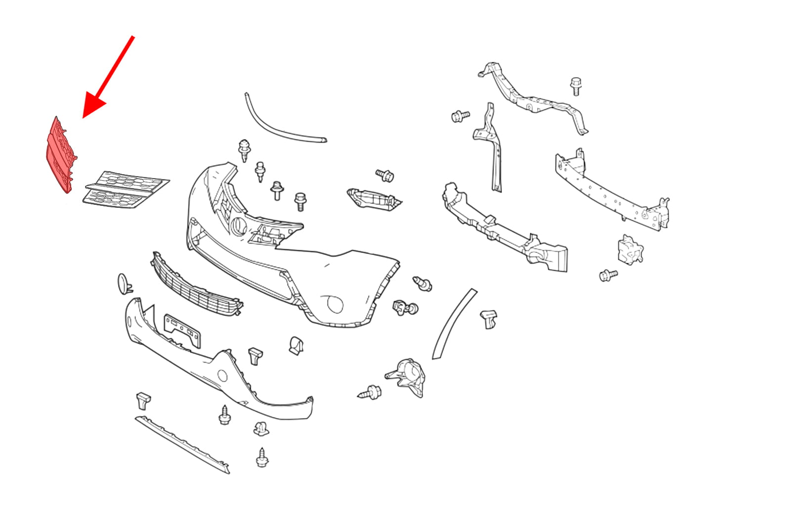 Kratka zderzaka, atrapa grilla, prawa, dla TOYOTA RAV4 IV (XA40) 2013-2015 (wersja przed faceliftingiem).