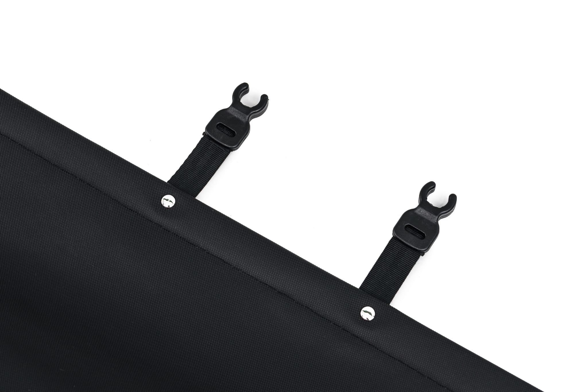 Elegancki czarny kolor oraz estetyka wykonania sprawiają, że roleta doskonale współgra ze stylem samochodu. Poszycie zasłony wykonane zostało z materiału odpornego na uszkodzenia oraz odbarwienia spowodowane nasłonecznieniem i zmianami temperatur, dzięki czemu produkt doskonale prezentuje się przez długi czas. Solidna kaseta oraz aluminiowa płyta zapewniają trwałość konstrukcji i wygodę użytkowania rolety. Kaseta zaprojektowana została w taki sposób, aby umożliwić stabilne zamocowanie jej w oryginalnych, fabrycznych miejscach montażowych za tylnymi fotelami. Dodatkowe uchwyty pozwalają na rozwinięcie rolety w kierunku tylnego oparcia i zamocowania jej na zagłówkach.