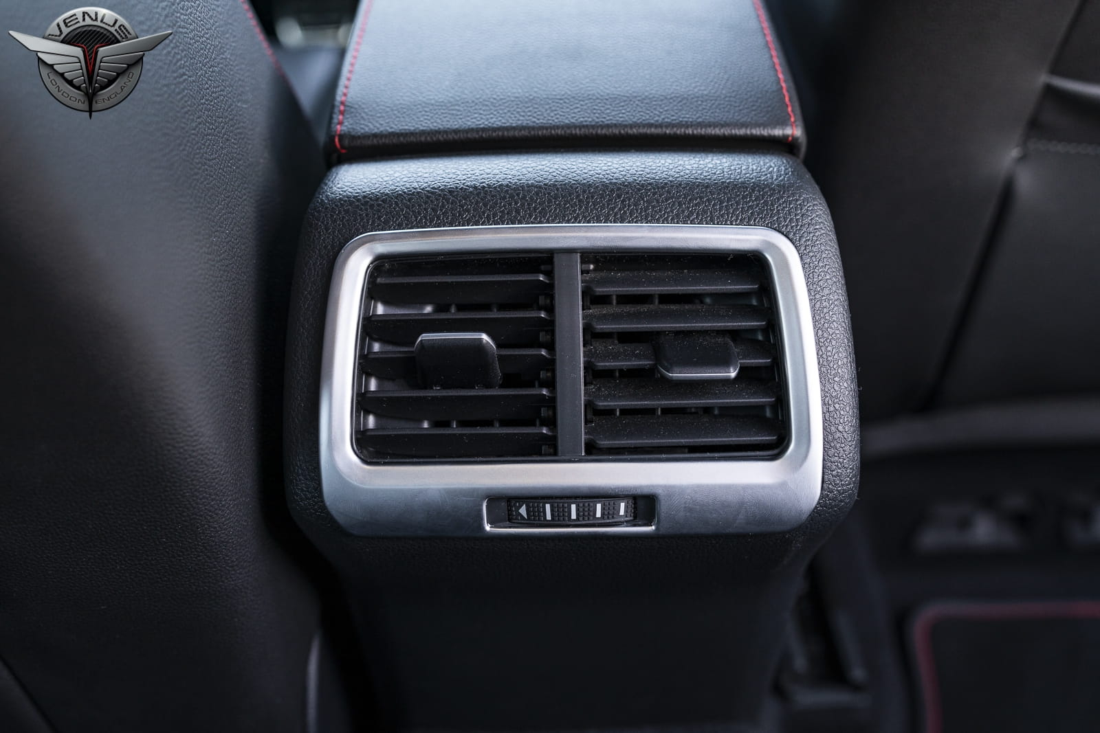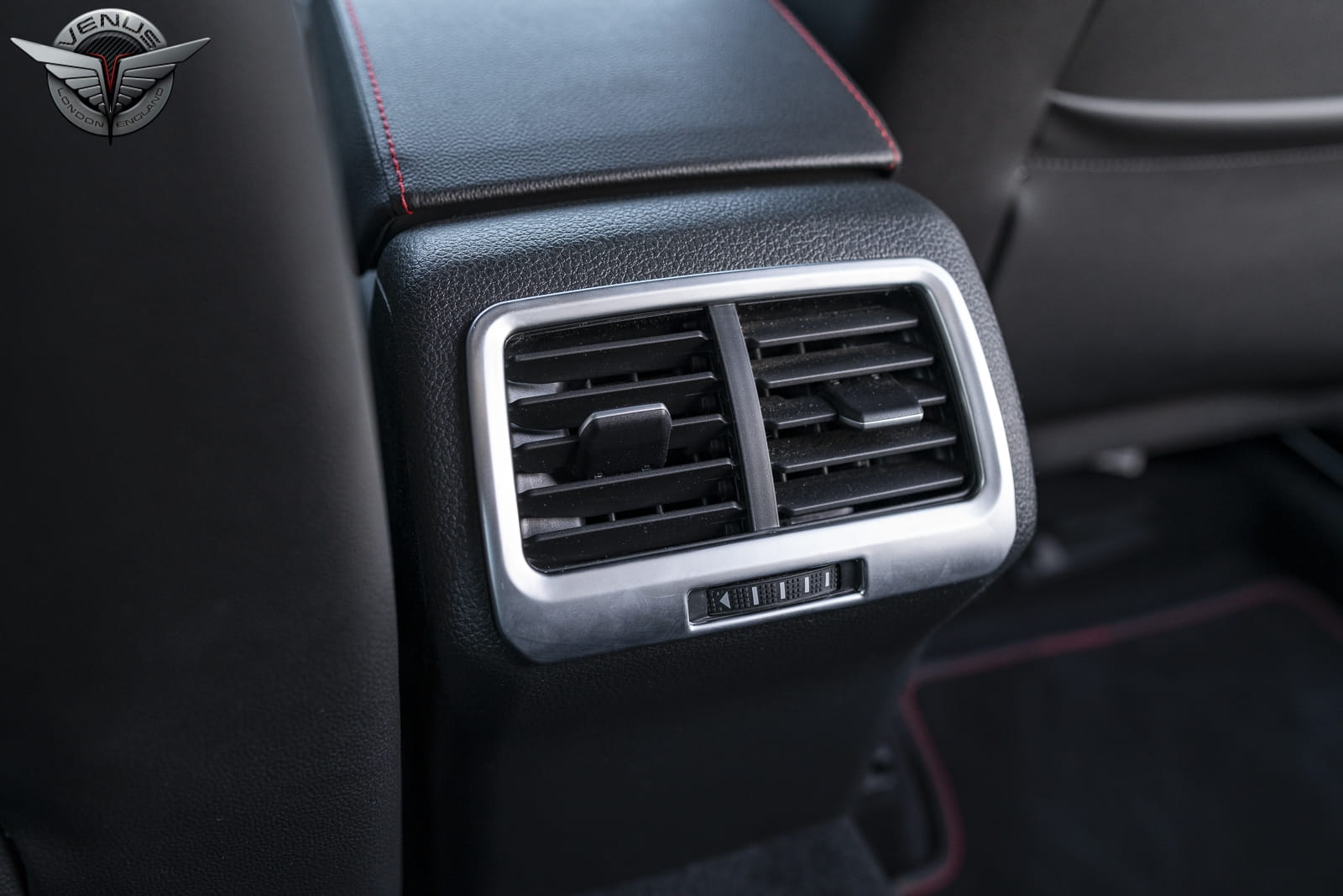 | Stylizacyjna ramka nawiewu na tył, zaprojektowana dla VOLKSWAGEN GOLF VII 2014+. Dekoracyjna obwódka sprawia, że nawiew na tył, oprócz pełnienia swej praktycznej funkcji, staje się prawdziwą ozdobą kabiny samochodu. Idealnie dopasowany kształt oraz satynowa struktura nakładki sprawiają, że nawiew na tył zyskuje pełną eleganckiego połysku, gustowną ramę. Element zaprojektowany został tak, by idealnie współgrać z innymi elementami wykończenia wnętrza samochodu, umożliwiając wykreowanie dopracowanej, robiącej wrażenie stylizacji.